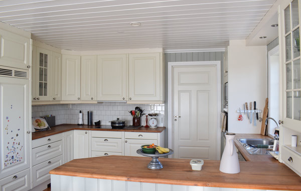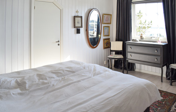 Her bor I på øen Stora Kalsøy i et førsteklasses feriehus i to plan med al komfort. Feriehusets rummelige værelser er elegant indrettede og byder på en lys, sommerlig atmosfære. Store vinduespartier til masser af lys, gulvvarme i stueplan og flere soveværelser til hele familien. Inde i huset finder I mange små steder at blive forelsket i. To stuer med sofalandskaber, hvor I kan hygge jer. Sæt jer på bænken på den åbne terrasse om morgenen og nyd solopgangen. Børnene kan boltre sig i den store have. Lej en båd for en fantastisk fisketur. Trænger I til lidt mere afslapning efter en lang dag, kan I forkæle jer selv i badekarret. En smuk oase til en varieret ferie.