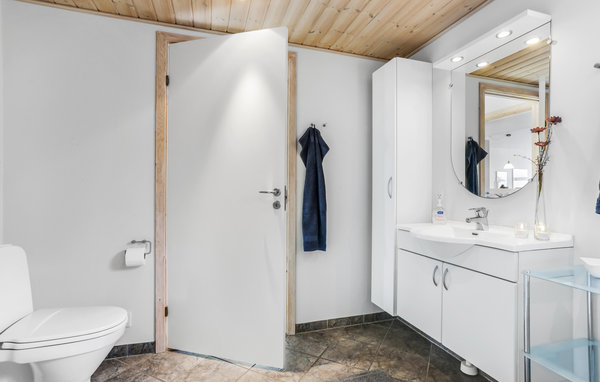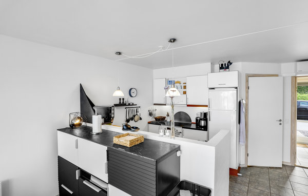 Køkken-alrummet har et lyst, varmt og hyggeligt udtryk, og herfra kan I træde ud på den dejlige træterrasse, hvor I kan nyde den maritime stemning med et lækkert måltid fra grillen.