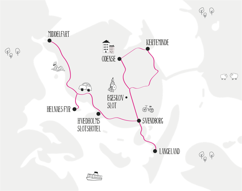 Rute: Odense - Kerteminde - Langeland & Svendborg - Middelfart