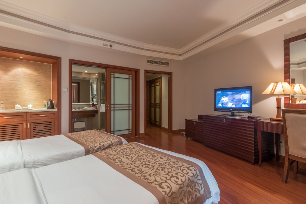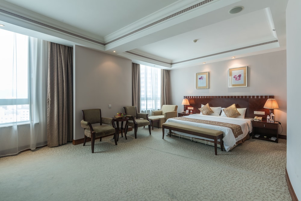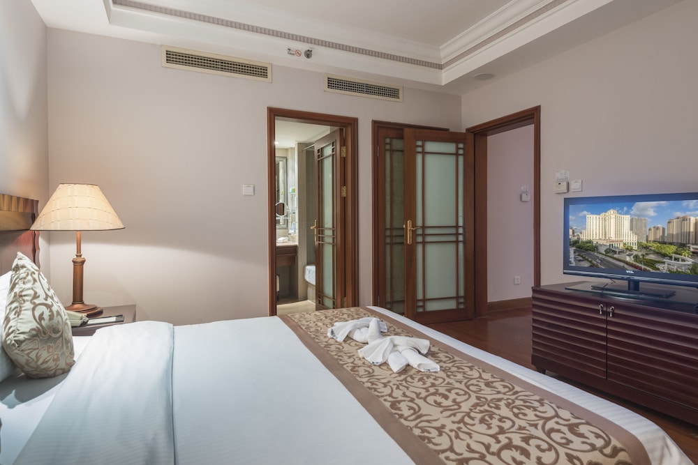 Gæsterne har blandt andet adgang til et forretningscenter, limousine- eller luksusbilservice og gratis aviser i lobbyen. Transport fra lufthavnen til hotellet er til rådighed mod et tillægsgebyr (døgnet rundt), og gratis selvstændig parkering findes desuden på stedet. Drag fordel af de rekreative tilbud på stedet, inklusive en udendørs pool, et fitnesscenter og udlejningscykler. Andre faciliteter på dette hotel inkluderer gratis trådløs internetadgang, concierge-tjenester og spillehal/spillerum. Gæsterne kan nemt komme til stranden ved at gøre brug af den gratis strandtransport. Få en bid mad på Cafe, som er en af 3 restauranter på dette hotel, eller bliv på værelset, og nyd godt af roomservice døgnet rundt Tag forbi baren/loungen, hvor du kan slukke tørsten med din yndlingsdrink. Som en service til vores kunder har vi leveret en bedømmelse baseret på vores bedømmelsessystem.- Gebyr for lufthavnstransport: 300 CNY pr. køretøj