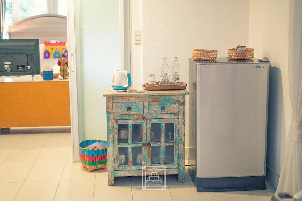 Baan Suan Residence ligger ved flodbredden i Chiang Mai, kun 15 minutters kørsel fra Chiang Mai Nationalmuseum og Wat Chiang Man. Dette hotel ligger 9,6 km fra Chiang Mai Universitet og 9,6 km fra Ved floden. Føl dig hjemme i et af de 25 aircondition-afkølede værelser, der indeholder køleskab og minibar. Der er et 32-tommers LCD-tv med kabelkanaler, som sørger for underholdningen, og med gratis Wi-Fi kan du altid komme på nettet. Badeværelserne indeholder separat badekar og bruser med brusehoved med spredningseffekt og gratis toiletartikler. Faciliteter inkluderer pengeskabe og skriveborde, og rengøring udføres dagligt. De viste afstande er afrundet til nærmeste 0,1 kilometer.