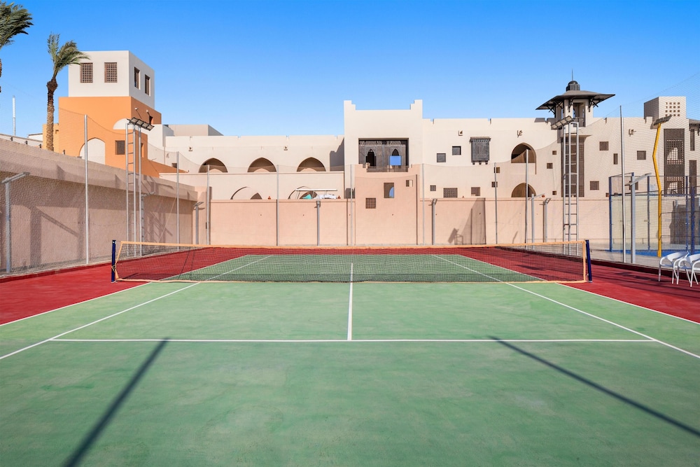 Med et ophold ved Pickalbatros The Palace Port Ghalib i El Quseir er du kun 3 minutters gang fra Det Røde Hav og 15 minutters gang fra Ghalib-havnens internationale marina. Dette hotel med alt inklusive ligger 8 km fra Skildpaddebugtens strand og 8,1 km fra Marsá Mubārak. Føl dig hjemme i et af de 311 aircondition-afkølede værelser, der indeholder minibar og LED-tv. Et tv med satellitkanaler sørger for underholdningen. Værelset har et privat badeværelse med bruser samt gratis toiletartikler og hårtørrer. Faciliteter inkluderer gratis mineralvand på flaske og rengøring udføres dagligt. De viste afstande er afrundet til nærmeste 0,1 kilometer.