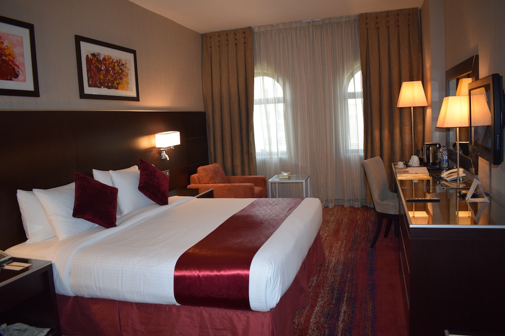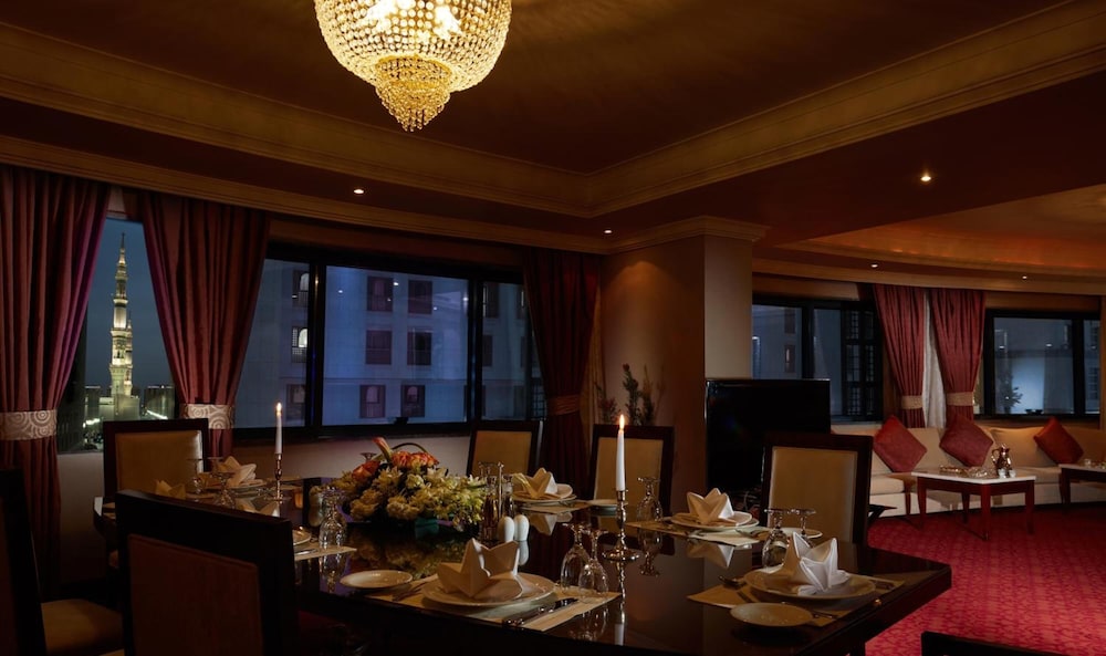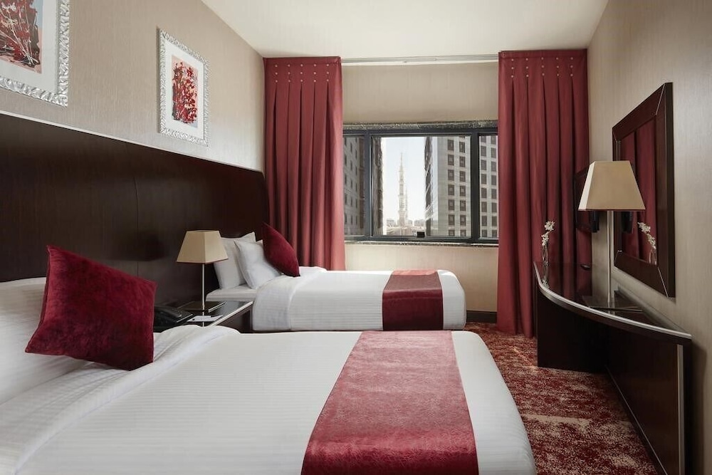 Med et ophold ved Frontel AlHarithia i Medina (Medina Centrum) er du kun 10 minutters gang fra Profetens moske og The Green Dome. Dette hotel 5 ligger 3 km fra Baqi-kirkegården og 3 km fra New Bilal Market. Føl dig hjemme i et af de 354 aircondition-afkølede værelser, der desuden indeholder LED-tv. Med gratis Wi-Fi kan du altid komme på nettet, og kabelkanaler sørger for underholdningen. Badeværelserne har badekar eller bruser, gratis toiletartikler og badekåbe. Faciliteter inkluderer pengeskabe og skriveborde, og rengøring udføres dagligt. De viste afstande er afrundet til nærmeste 0,1 kilometer.