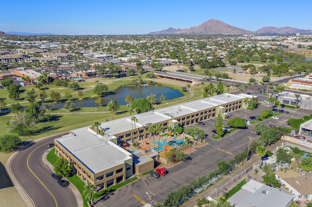Med et ophold ved Scottsdale Parkview Resort befinder du dig i hjertet af Scottsdale, kun få skridt fra Vista Del Camino Park og 2 minutters kørsel fra Coronado Golf Course. Dette hotel ligger 2,7 km fra Desert Botanical Garden og 3,8 km fra Greenbaum Surgery Center. Føl dig hjemme i et af de 130 aircondition-afkølede værelser, der indeholder køleskab og mikrobølgeovn. Der er et 55-tommers fladskærms-tv med satellitkanaler, som sørger for underholdningen, og med gratis Wi-Fi kan du altid komme på nettet. Badeværelserne har designertoiletartikler og hårtørrer. Faciliteter inkluderer skriveborde og kaffe-/temaskiner, samt telefoner med gratis lokalopkald. De viste afstande er afrundet til nærmeste 0,1 kilometer.