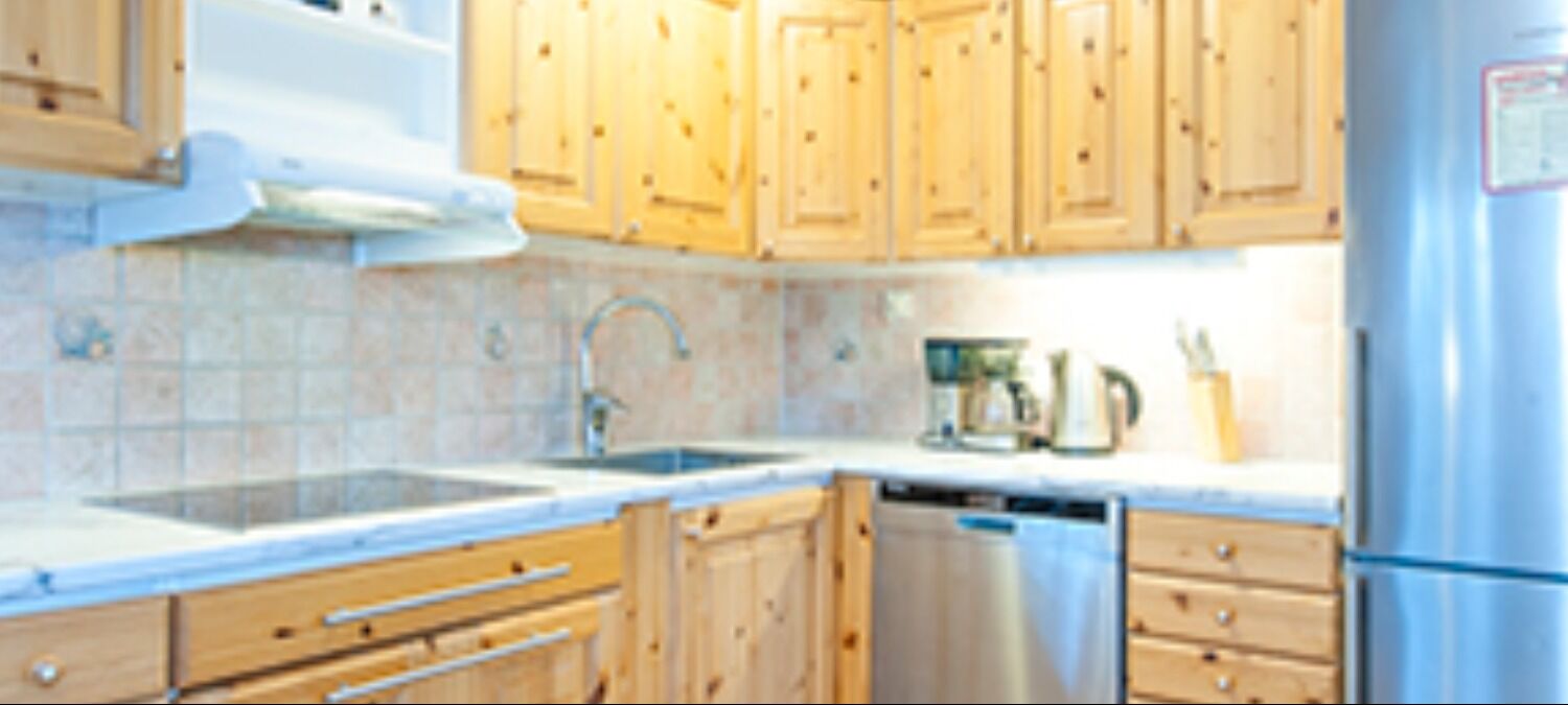 Køkkenet er udstyret med opvaskemaskine, køle/fryseskab, kogeplader, ovn og mikroovn.