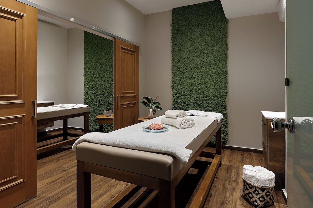 Gæsterne har blandt andet adgang til en døgnåben reception, bagageopbevaring og vandbeholder. Mod et tillægsgebyr har gæster adgang til lufthavnstransport tur-retur (efter anmodning) og transport til færgeterminal. Lad dig forkæle med kropsbehandlinger og ansigtsbehandlinger på stedet. Du vil helt sikkert værdsætte de rekreative faciliteter, herunder 8 udendørs swimmingpools, en vandrutsjebane og en sauna. Andre faciliteter på dette hotel inkluderer trådløs internetadgang (tillægsgebyr), concierge-tjenester og babysitning (tillægsgebyr). Spis dig mæt i internationale retter på Estia, som er en af dette hotels 3 restauranter, eller bliv på værelset, og nyd godt af roomservice (i et begrænset antal timer).Tag forbi baren/loungen samt de 2 barer ved poolen, hvor du kan slappe af med en forfriskende drink. Gratis morgenmadsbuffet serveres dagligt fra kl. 07.30 til kl. 10.30. Overnatningsstedet lukkes fra den 31. oktober til den 31. december.