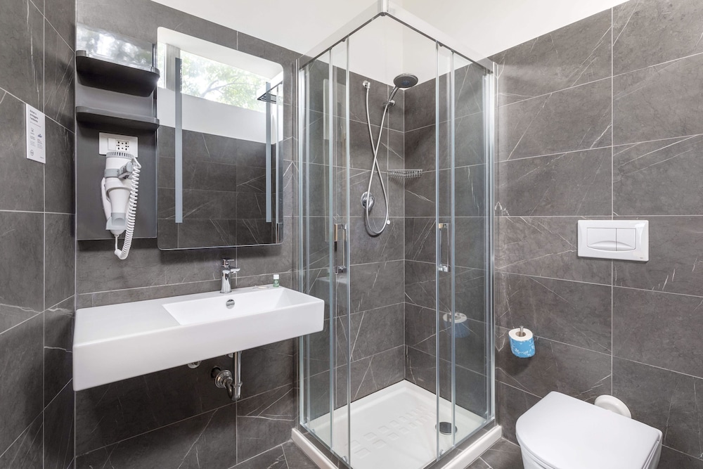 B&B Hotel Pomezia Roma ligger i Pomezia, blot 10 minutters kørsel fra Pratica di Mare-flybasen og Cinecitta World. Dette hotel ligger 29,2 km fra Fiera di Roma og 34,4 km fra Arkæologisk Park Ostia Antica. Føl dig hjemme i et af de 75 aircondition-afkølede værelser, der desuden indeholder smart-tv. Med gratis Wi-Fi kan du altid komme på nettet, og satellitkanaler sørger for underholdningen. Værelset har et privat badeværelse med bruser samt brusehoved med spredningseffekt og gratis toiletartikler. De viste afstande er afrundet til nærmeste 0,1 kilometer.