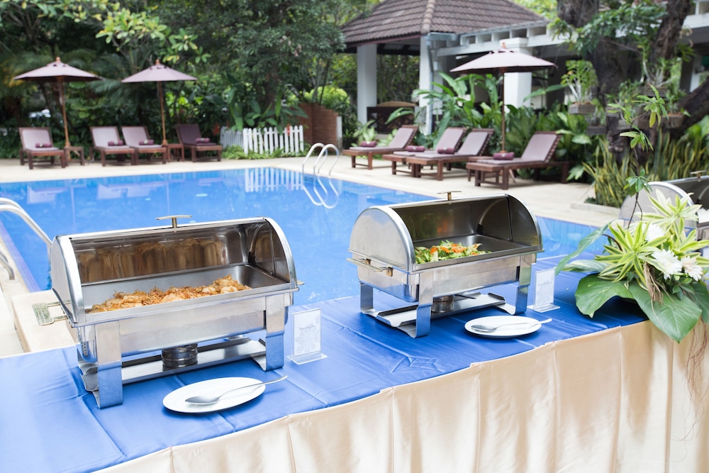 Gæsterne har blandt andet adgang til et døgnåbent forretningscenter, hurtig udtjekning og gratis aviser i lobbyen. Planlægger du et arrangement i Chiang Mai? På dette hotel er der et område på 95 kvadratmeter til rådighed, bestående af konferencelokaler og 2 mødelokaler. Gratis selvstændig parkering er til rådighed på stedet. Fra en terrasse og en have kan du nyde den skønne udsigt, eller du kan drage fordel af rekreative tilbud, såsom en udendørs pool. Dette hotel tilbyder desuden gratis trådløs internetadgang, concierge-tjenester og fælles stue. Gæsterne kan få et lift til nærliggende destinationer med transportservicen (tillægsgebyr). Få stillet sulten med frokost eller aftensmad på The Garden Terrace, en restaurant, som specialiserer sig i thailandske retter. Du kan også blive på værelset, hvor der er mulighed for roomservice (i et begrænset antal timer). Afslut dagen med en drink eller to i baren/loungen. Morgenmadsbuffet tilbydes mod gebyr dagligt fra kl. 06.00 til kl. 10.00.- Gebyr for morgenmadsbuffet: 240 THB for voksne og 120 THB for børn (cirkapriser)