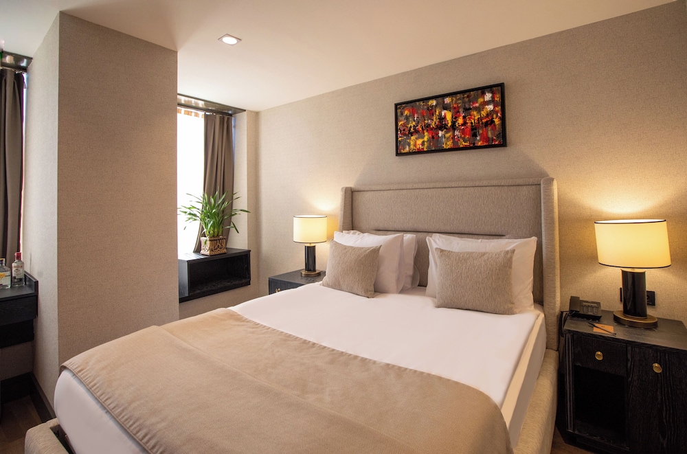 Root Hotel Karakoy Bosphorus ligger i centrum af Istanbul, kun 10 minutters gang fra Istanbul Museum for Moderne Kunst og Galataport. Dette hotel med luksusfaciliteter ligger 2 km fra Den Egytpiske Basar og 2,1 km fra Taksim-pladsen. Føl dig hjemme i et af de 74 aircondition-afkølede værelser, der indeholder iPod-dockingstation og smart-tv. Din seng er udstyret med madras af viskoelastisk skum og egyptiske bomuldslagner. Med gratis Wi-Fi kan du altid komme på nettet, og satellitkanaler sørger for underholdningen. Værelset har et privat badeværelse med bruser samt brusehoved med spredningseffekt og designertoiletartikler. De viste afstande er afrundet til nærmeste 0,1 kilometer.