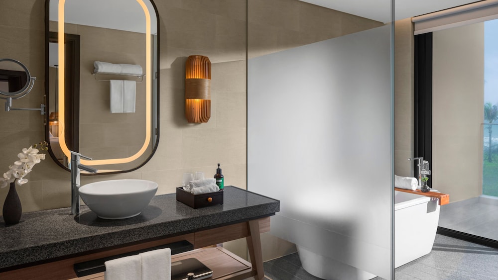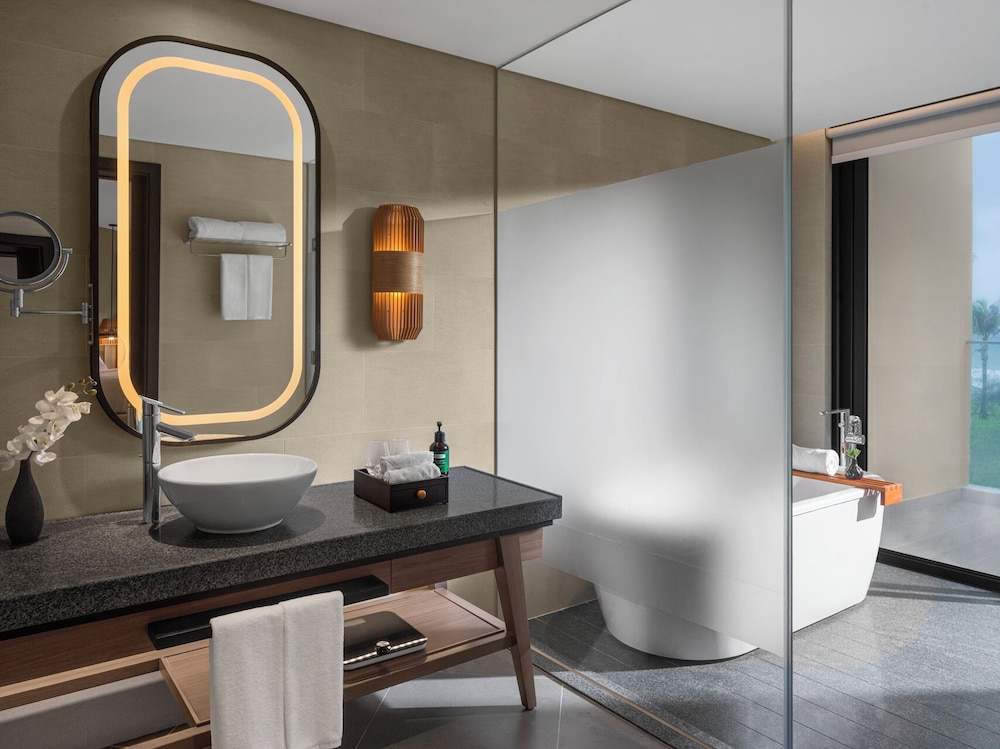 Crowne Plaza Phu Quoc Starbay by IHG ligger ved havet i Phu Quoc, kun 10 minutters kørsel fra Vinpearl Golf Phú Quốc og Phú Quốc Corona Casino og Resort. Dette hotel ved stranden ligger 3,6 km fra Shophouse Grand World og 4,2 km fra VinWonders Phu Quoc. Forkæl dig selv med et ophold i et af de 308 værelser, der er indrettet med individuelt design, og som desuden indeholder pejse og indendørs private boblebade. Din seng er udstyret med madras af viskoelastisk skum og premium-sengetøj. Værelserne har privat balkon eller terrasse. Der er et 45-tommers LCD-tv med kabelkanaler, som sørger for underholdningen, og med gratis Wi-Fi kan du altid komme på nettet. De viste afstande er afrundet til nærmeste 0,1 kilometer.