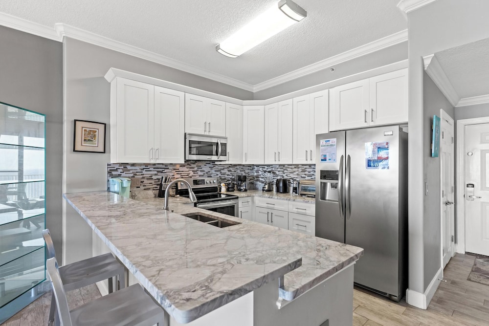 Med et ophold hos denne lejlighed i Panama City Beach (Long Beach) er du kun få skridt fra Panama City Beaches og 14 min. gang fra Thomas Drive. Denne lejlighed ved stranden ligger 8,2 km fra Pier Park og 2,7 km fra Shipwreck Island Waterpark. Find dig til rette i denne lejlighed med individuelt design. Der er også et køkken med både et køleskab og en ovn. Der er en privat møbleret balkon. Der er gratis Wi-Fi, så du altid kan komme på nettet, mens kabelkanaler sørger for underholdningen. Faciliteter inkluderer blandt andet en mikrobølgeovn og en kaffe/temaskine. De viste afstande er afrundet til nærmeste 0,1 kilometer.