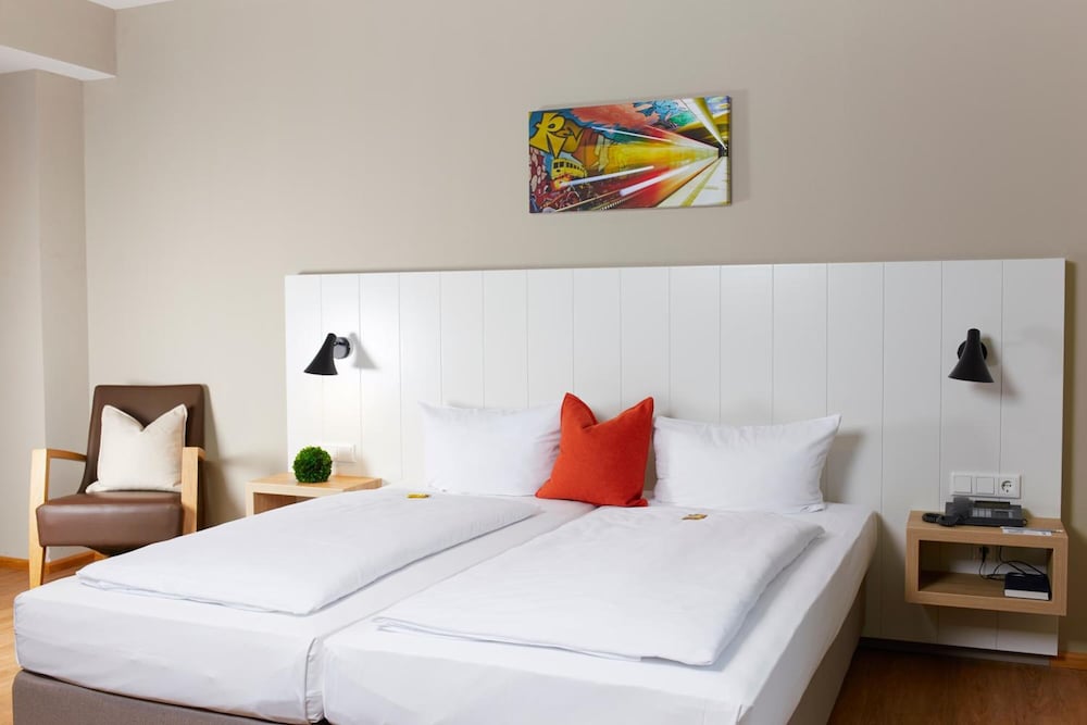 Overnatter du ved Hotel Alpha, som ligger tæt på lufthavnen i Nürnberg, er du kun 15 minutters kørsel fra Nürnberger Christkindlesmarkt og NürnbergMesse. Dette hotel ligger 17,6 km fra Playmobil FunPark og 3 km fra Stadtpark. Føl dig hjemme i et af de 24 værelser, der indeholder minibar og fladskærms-tv. Med gratis Wi-Fi kan du altid komme på nettet, og kabelkanaler sørger for underholdningen. Værelset har et privat badeværelse med bruser samt gratis toiletartikler og hårtørrer. Faciliteter inkluderer skriveborde og mørklægningsgardiner, samt telefoner med gratis lokalopkald. De viste afstande er afrundet til nærmeste 0,1 kilometer.