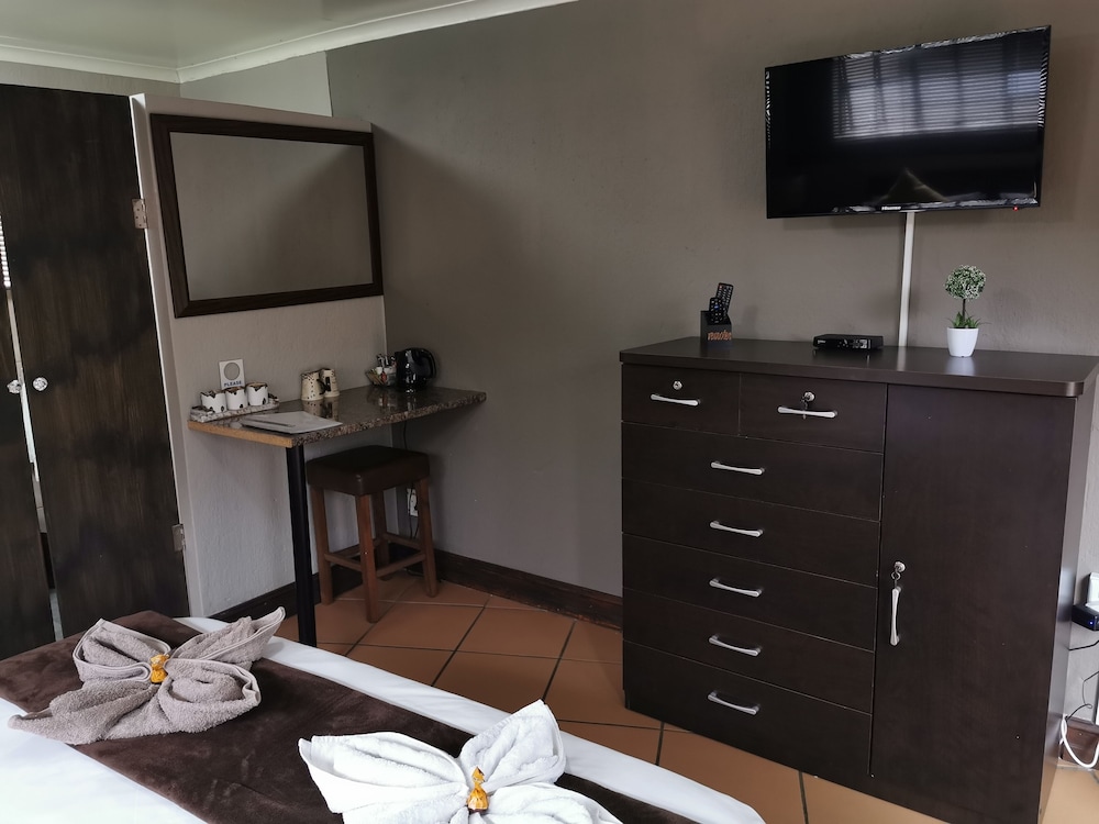 Gæsterne har blandt andet adgang til bagageopbevaring, vaskeri og et pengeskab i receptionen. Transport fra lufthavnen til hotellet er til rådighed mod et tillægsgebyr (døgnet rundt), og gratis selvstændig parkering findes desuden på stedet. Du kan lade dig selv forkæle med massage på stedet eller nyde rekreative faciliteter, såsom en udendørs pool. Andre faciliteter på dette gæstehus inkluderer gratis trådløs internetadgang, spillehal/spillerum og gavebutik/aviskiosk. Nyd et måltid på restauranten, eller bliv på værelset, og nyd godt af dette gæstehuss roomservice. Hvis du har lyst til at mingle med de andre gæster, bør du tage med til en gratis reception, der afholdes dagligt. Tag forbi baren/loungen, hvor du kan slukke tørsten med din yndlingsdrink. Morgenmad tilberedt efter bestilling tilbydes mod gebyr dagligt fra kl. 07.00 til kl. 09.00.- Gebyr for morgenmad tilberedt efter bestilling: 100 ZAR for voksne og 50 ZAR for børn (cirkapriser)
