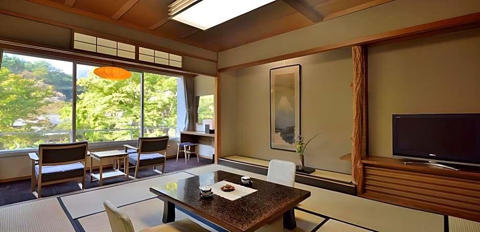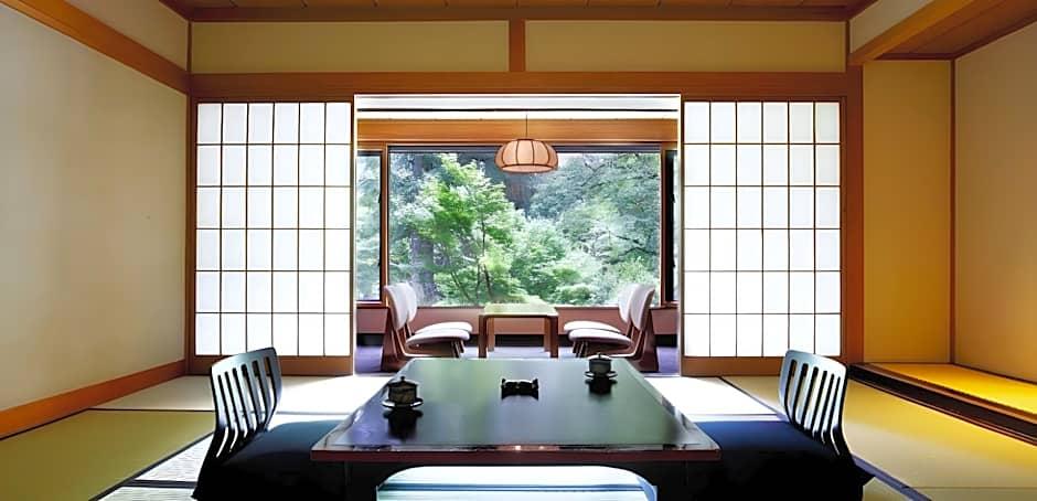 Yoshiike Ryokan er beliggende på det sted, hvor Baron Iwasakis tidligere villa engang lå, på en grund, der dækker 10. 000 tsubo (cirka 33. 000 kvadratmeter). I haven kan du fuldt ud nyde naturens skiftende skønhed fra den ene årstid til den anden. Varmt kildevand bliver rigeligt leveret ikke kun til de store fællesbade og de udendørs bade, men også til de private bade, som er installeret på hotellets gæsteværelser. Til dit måltid kan du nyde frisk fisk og skaldyr, som er fanget lokalt.
