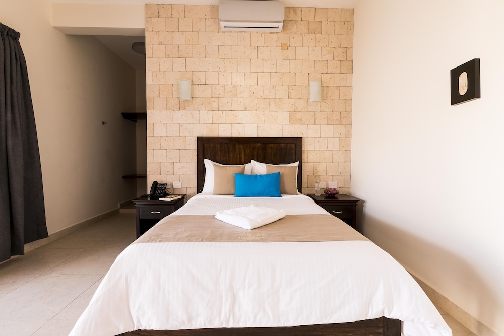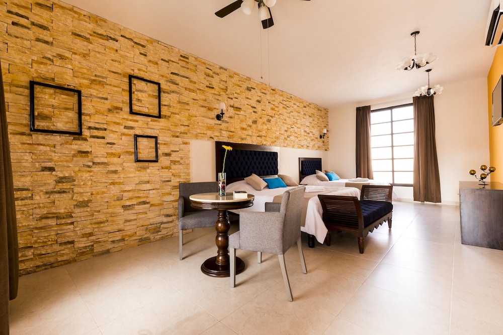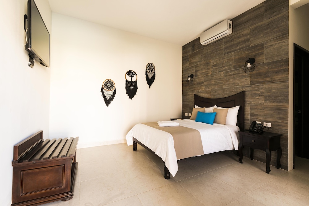 Hotel Los Frailes, Valladolid, Yucatán ligger i forlystelsesområdet i Valladolid, kun 15 minutters gang fra San Bernardino de Sienas Kloster og Calzada de los Frailes. Dette hotel ligger 1,5 km fra Pancho Vila Tequileria og 1,7 km fra San Gervasio Katedral. Føl dig hjemme i et af de 19 værelser, der er indrettet med individuelt design. Din seng er udstyret med dundyner og premium-sengetøj. Med gratis Wi-Fi kan du altid komme på nettet, og kabelkanaler sørger for underholdningen. Badeværelserne inkluderer bruser med brusehoved med spredningseffekt. De viste afstande er afrundet til nærmeste 0,1 kilometer.