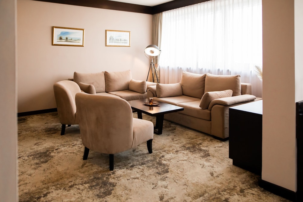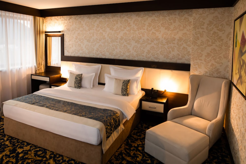 Malak Regency Hotel ligger ved flodbredden i Sarajevo, kun 15 minutters kørsel fra Vrelo Bosne Park og Latinerbroen. Dette hotel med luksusfaciliteter ligger 11,6 km fra Den Evige Flamme og 11,8 km fra Gazi Husrev-Beg Moske. Føl dig hjemme i et af de 174 værelser, der indeholder minibar og fladskærms-tv. Med gratis Wi-Fi kan du altid komme på nettet, og kabelkanaler sørger for underholdningen. Værelset har et privat badeværelse med bruser samt bidet og hårtørrer. Faciliteter inkluderer pengeskabe og skriveborde, samt telefoner med gratis lokalopkald. De viste afstande er afrundet til nærmeste 0,1 kilometer.