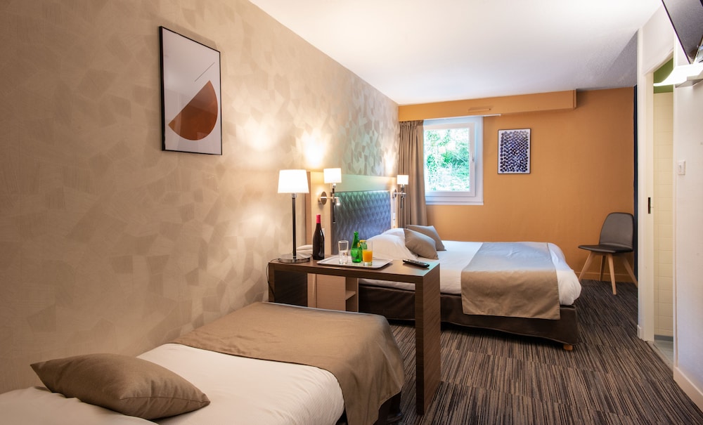 Overnatter du ved Hotel Opal'Inn, som ligger tæt på stranden i Boulogne-sur-Mer, er du kun 1 minutters gang fra Bologne-sur-Mer Strand og 5 minutters gang fra Beurière Hus. Dette hotel ligger 0,1 km fra Nausicaá Nationale Akvarium og 1,5 km fra Regionale Naturpark af Caps og Opal Marsk. Føl dig hjemme i et af de 42 aircondition-afkølede værelser, der desuden indeholder fladskærms-tv. Med gratis Wi-Fi kan du altid komme på nettet, og kabelkanaler sørger for underholdningen. Værelset har et privat badeværelse med bruser samt gratis toiletartikler og hårtørrer. Faciliteter inkluderer telefoner samt skriveborde og aftenopredning. De viste afstande er afrundet til nærmeste 0,1 kilometer.