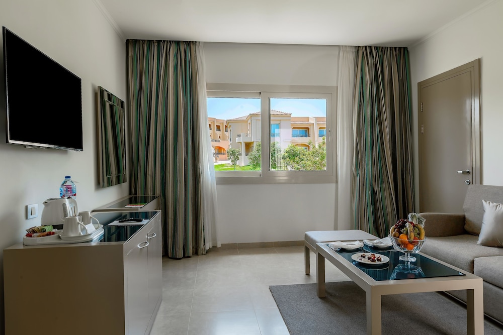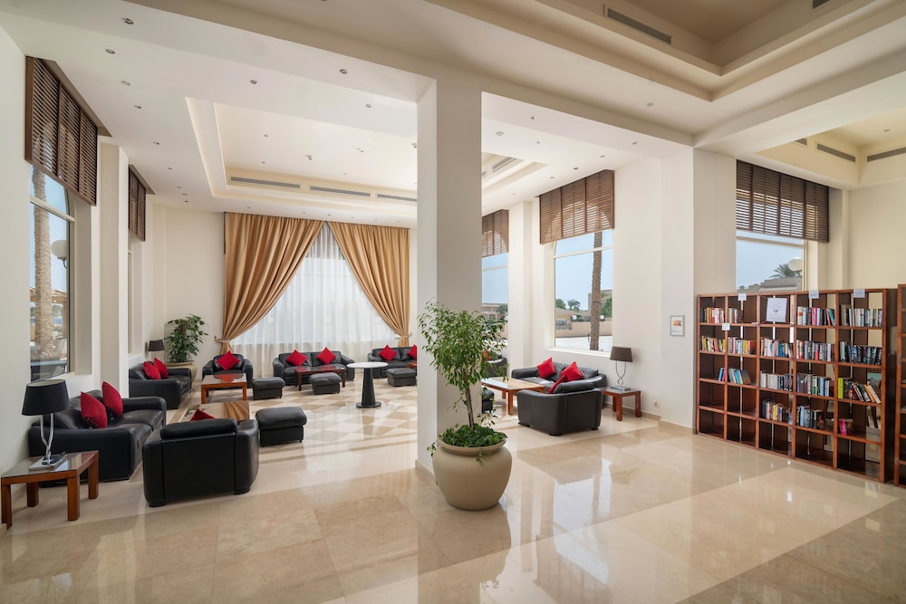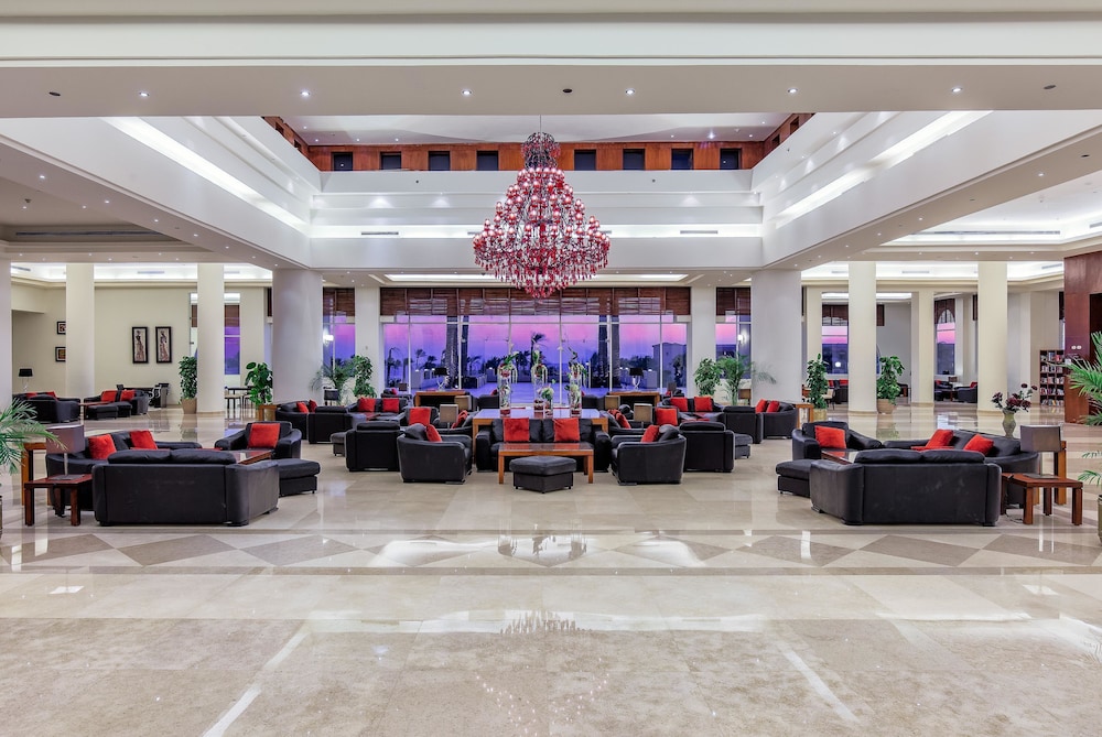 Overnatter du ved Cleopatra Luxury Resort Makadi Bay, som ligger tæt på bugten i Makadi-bugten, er du kun 10 minutters gang fra Det Røde Hav og Makadi Bay Strand. Dette resort ved stranden ligger 39,4 km fra Marina Hurghada og 42,2 km fra Hurghada Centrum. Føl dig hjemme i et af de 530 værelser, der indeholder minibar og LCD-tv. Din seng har topmadras og er udstyret med dundyner og egyptiske bomuldslagner. Værelserne har privat balkon eller terrasse. Med gratis Wi-Fi kan du altid komme på nettet, og satellitkanaler sørger for underholdningen. Værelset har et privat badeværelse med badekar eller bruser samt designertoiletartikler og hårtørrer. De viste afstande er afrundet til nærmeste 0,1 kilometer.