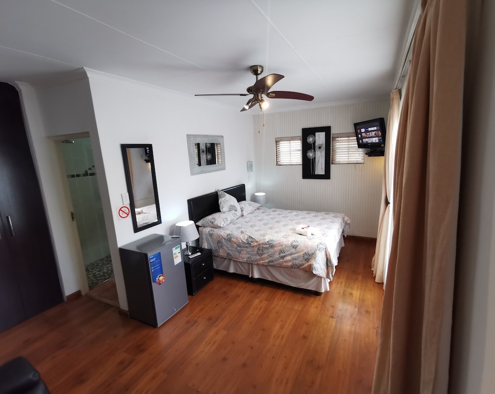 Villa Stella i Edenvale ligger kun 5 minutters kørsel fra Glendower Golf Course og 7 minutters kørsel fra Greenstone Shopping Centre. Dette Bed & Breakfast ligger 6,6 km fra Eastgate Indkøbscenter og 9,5 km fra Modderfontein Golfklub. Føl dig hjemme i et af de 6 værelser, der er indrettet med individuelt design. Med gratis Wi-Fi kan du altid komme på nettet, og satellitkanaler sørger for underholdningen. Værelset har et privat badeværelse med en kombination af bruser/badekar samt bidet og hårtørrer. Faciliteter inkluderer skriveborde og elkedler, og rengøring udføres dagligt. De viste afstande er afrundet til nærmeste 0,1 kilometer.