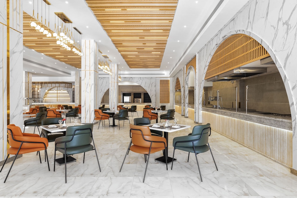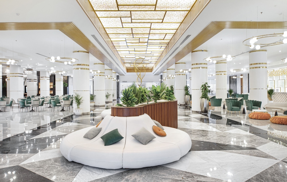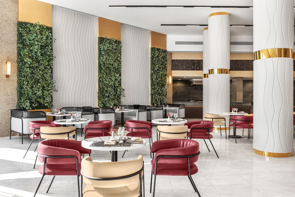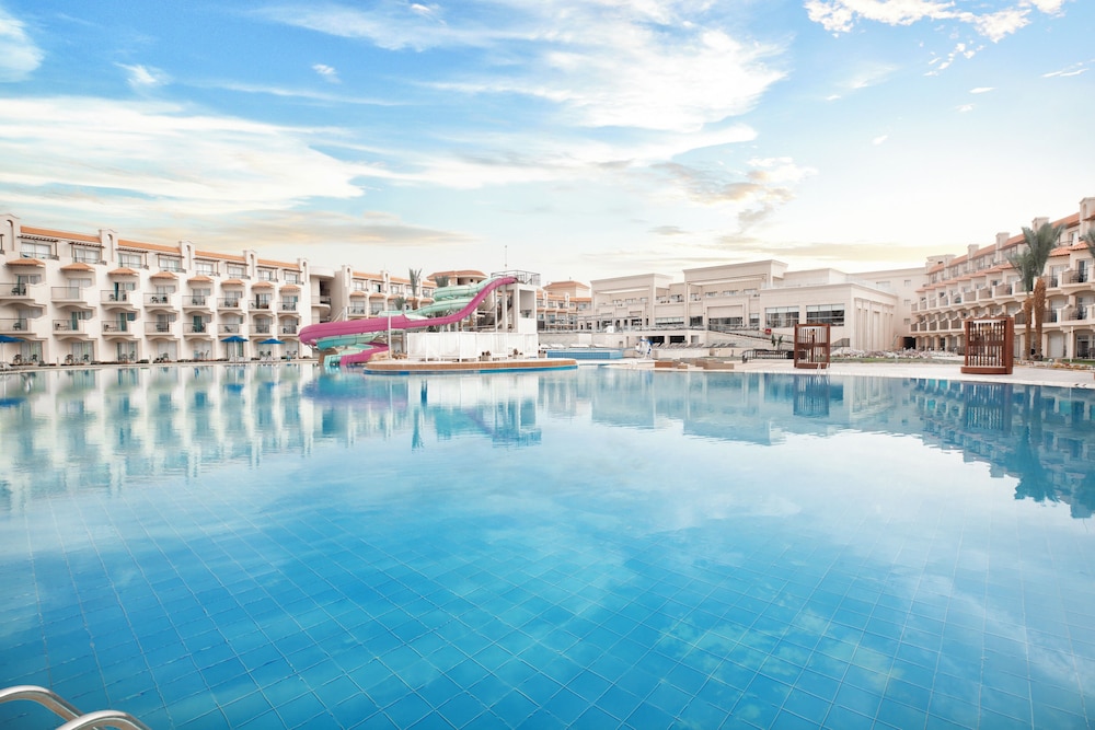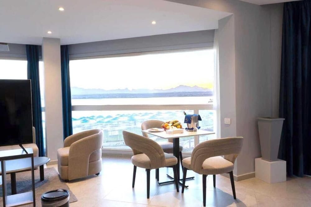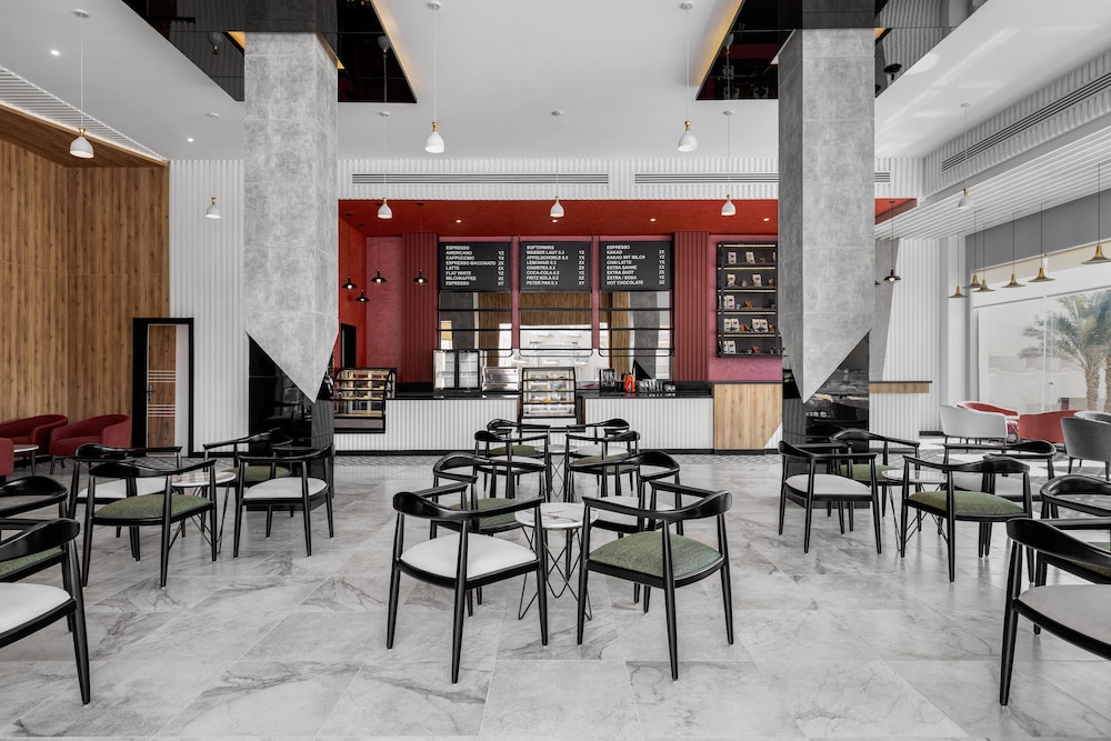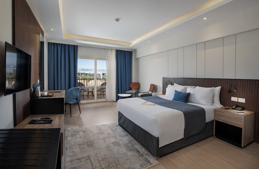 Overnatter du ved The V Luxury Resort Sahl Hasheesh, som ligger tæt på lufthavnen i Sahl Hasheeh, er du kun 5 minutters kørsel fra Det Røde Hav og Old Town Sahl Hasheesh. Dette resort ved stranden ligger 27,8 km fra Marina Hurghada og 7 km fra Makadi Bay Strand. Føl dig hjemme i et af de 346 værelser med individuelt design, der desuden har gratis produkter i minibaren og LED-tv. Din seng er udstyret med madras af viskoelastisk skum og egyptiske bomuldslagner. Med gratis Wi-Fi kan du altid komme på nettet, og kabelkanaler sørger for underholdningen. Værelset har et privat badeværelse med bruser samt brusehoved med spredningseffekt og designertoiletartikler. De viste afstande er afrundet til nærmeste 0,1 kilometer.