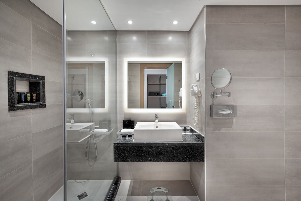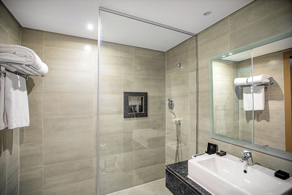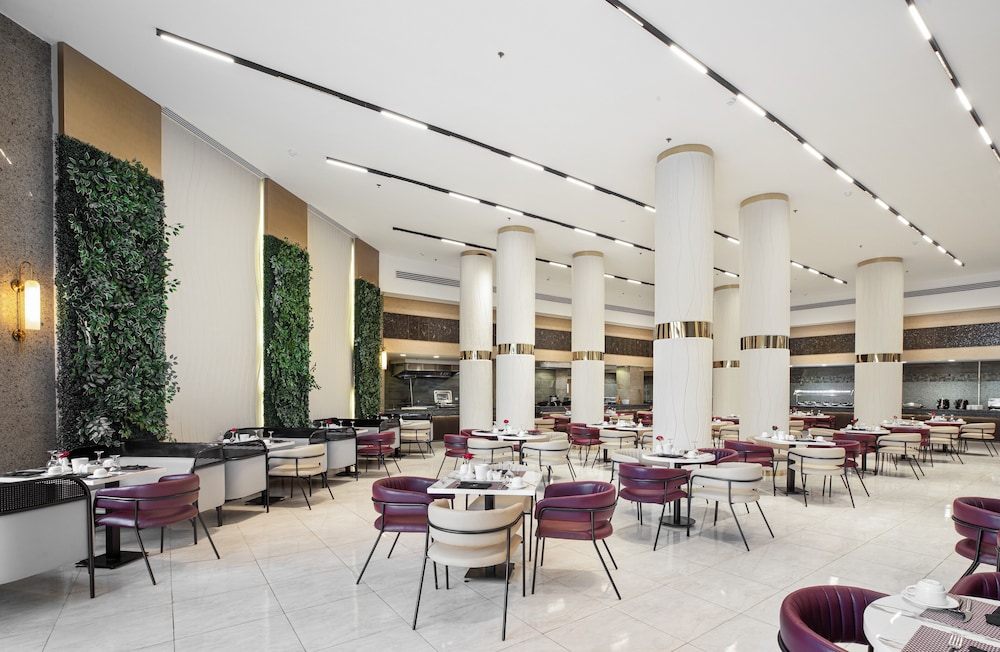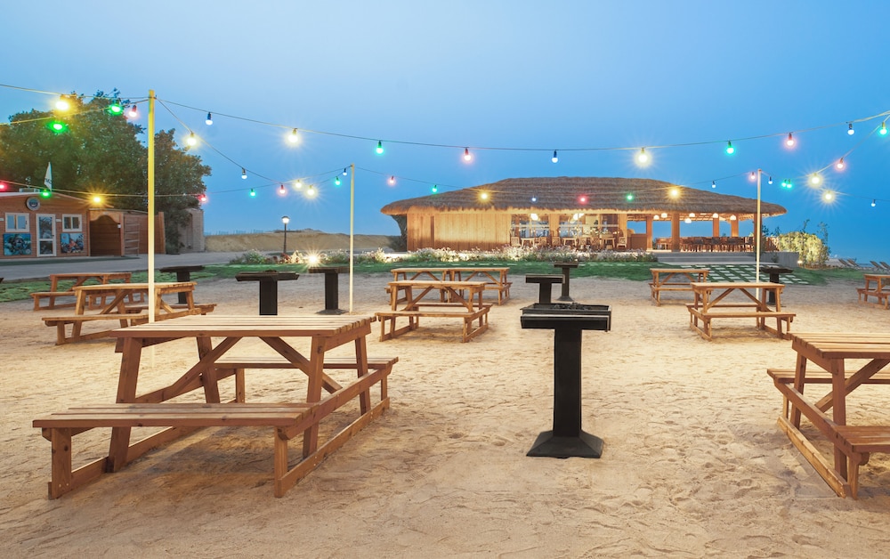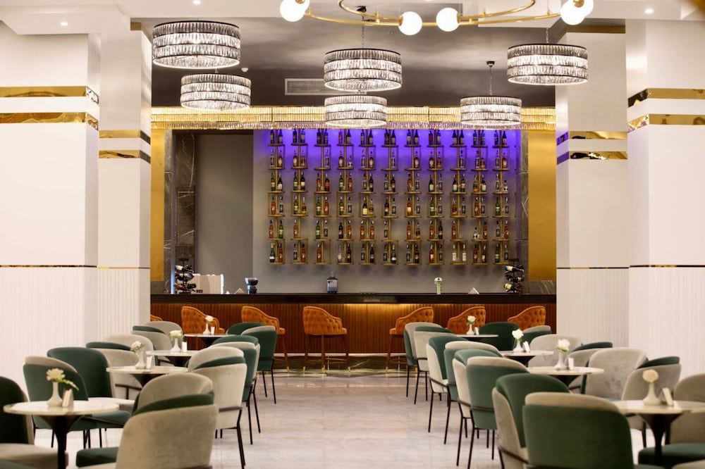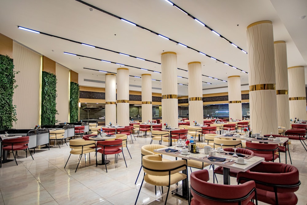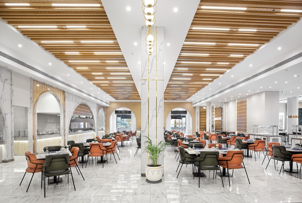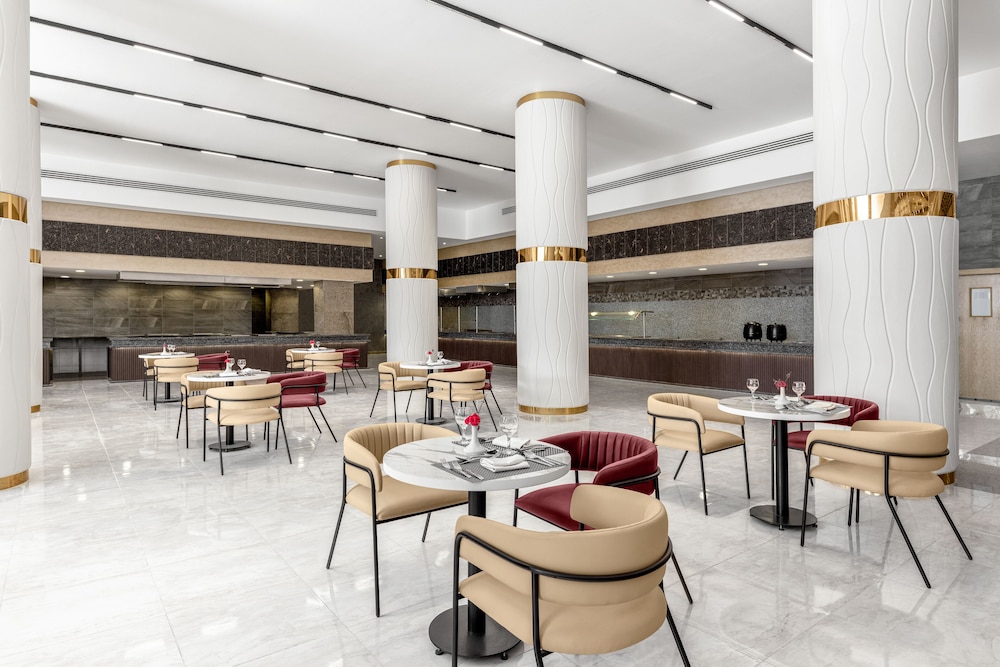 Overnatter du ved The V Luxury Resort Sahl Hasheesh, som ligger tæt på lufthavnen i Sahl Hasheeh, er du kun 5 minutters kørsel fra Det Røde Hav og Old Town Sahl Hasheesh. Dette resort ved stranden ligger 27,8 km fra Marina Hurghada og 7 km fra Makadi Bay Strand. Føl dig hjemme i et af de 346 værelser med individuelt design, der desuden har gratis produkter i minibaren og LED-tv. Din seng er udstyret med madras af viskoelastisk skum og egyptiske bomuldslagner. Med gratis Wi-Fi kan du altid komme på nettet, og kabelkanaler sørger for underholdningen. Værelset har et privat badeværelse med bruser samt brusehoved med spredningseffekt og designertoiletartikler. De viste afstande er afrundet til nærmeste 0,1 kilometer.
