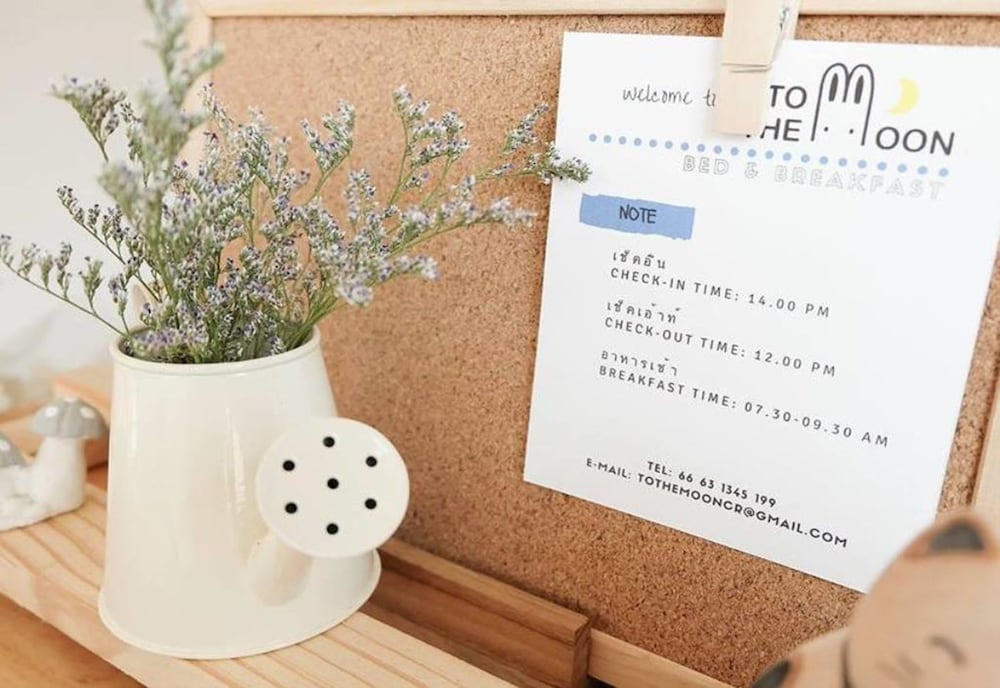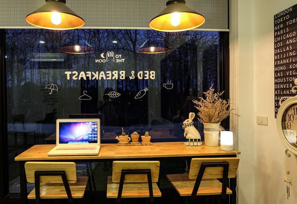 To the Moon Bed and Breakfast ligger i Chiang Rai, kun 15 minutters kørsel fra Wat Rong Khun – Det Hvide Tempel og Chiang Rai Klokketårn. Dette gæstehus ligger 12,3 km fra Chiang Rai Natmarked og 22,1 km fra Chiang Rai Rajabhat Universitet. Føl dig hjemme i et af de 4 aircondition-afkølede værelser, der indeholder køleskab og fladskærms-tv. Værelserne har privat terrasse. Med gratis Wi-Fi kan du altid komme på nettet, og kabelkanaler sørger for underholdningen. Værelset har et privat badeværelse med bruser samt gratis toiletartikler og hårtørrer. De viste afstande er afrundet til nærmeste 0,1 kilometer.