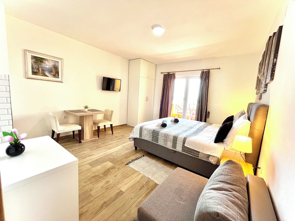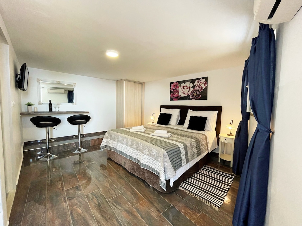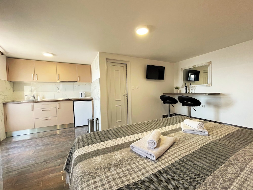 Villa Sunset ligger ved vandet i Župa dubrovačka, kun 15 minutters kørsel fra Pile-porten og Dubrovnik Katedral. Denne lejlighed ligger 14 km fra Dubrovnik Færgehavn og 14 km fra Gruz Havn. Føl dig hjemme i et af de 10 aircondition-afkølede værelser, der indeholder køkken med køleskab og kogeplade. Der er et 60-tommers LCD-tv med satellitkanaler, som sørger for underholdningen, og med gratis Wi-Fi kan du altid komme på nettet. Faciliteterne inkluderer skriveborde og mikrobølgeovne. De viste afstande er afrundet til nærmeste 0,1 kilometer.
