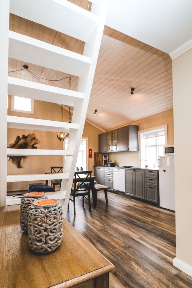 Med et ophold ved G19 Boutique Apartments har du en central base i Akureyri, kun 4 minutters gang fra Hof - Kulturcenter og Konferencehal og 8 minutters gang fra Center for Visuel Kunst. Denne lejlighed ligger 1,1 km fra Matthiasarhús og 1,1 km fra Akureyri Church. Føl dig hjemme i et af de 6 værelser, der indeholder køkken med køleskab og kogeplade. Der er et 55-tommers smart-tv med Netflix som underholdning, og med gratis Wi-Fi kan du altid komme på nettet. Faciliteter inkluderer mikrobølgeovne og mørklægningsgardiner, og rengøring udføres en gang pr. ophold. De viste afstande er afrundet til nærmeste 0,1 kilometer.