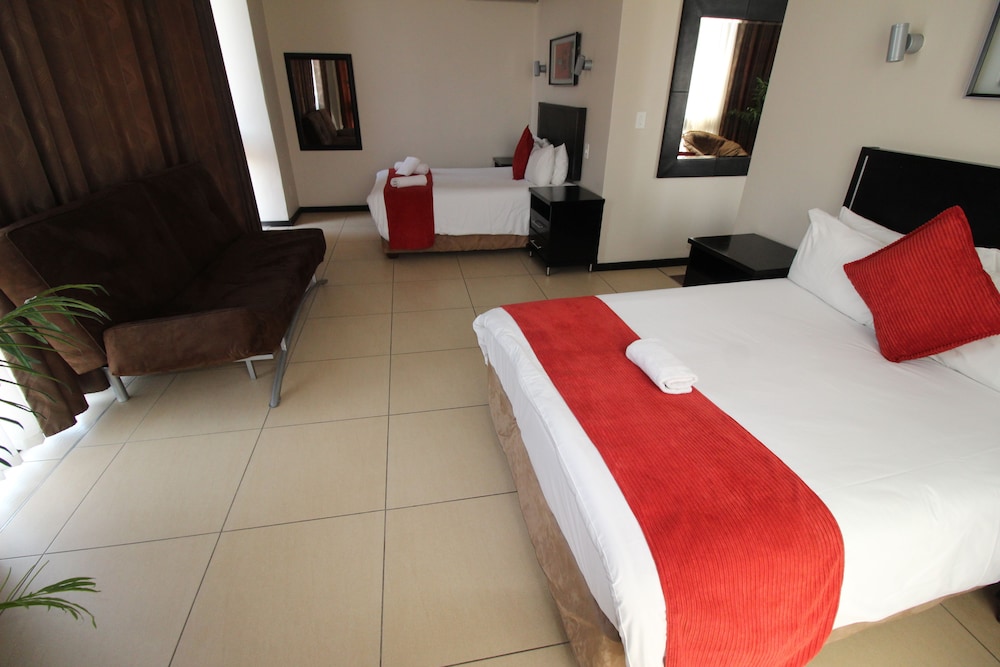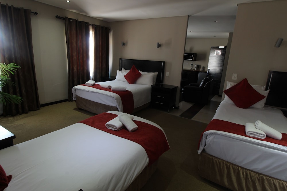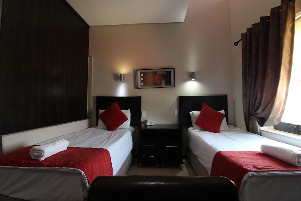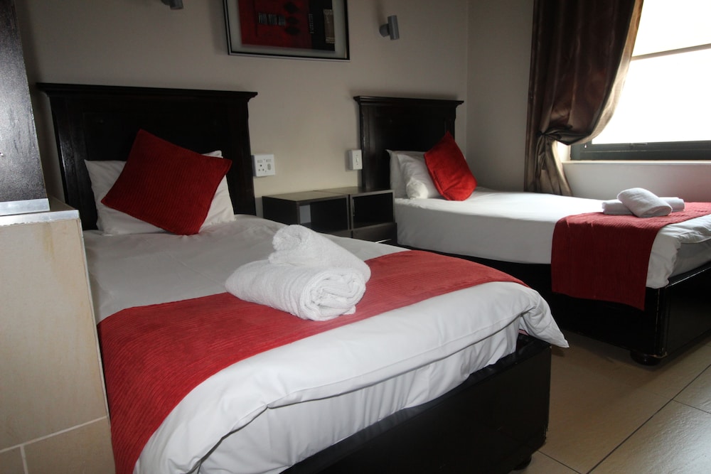 Med et ophold ved Alcazaba Lodges har du en central base i Johannesborg, kun 10 minutters kørsel fra Gold Reef City Casino og Melrose Arch Indkøbscenter. Dette hotel ligger 16,7 km fra Nelson Mandelapladsen og 0,4 km fra Oriental Plaza. Føl dig hjemme i et af de 28 aircondition-afkølede værelser, der indeholder tekøkken med køleskab og mikrobølgeovn. Der tilbydes et fladskærms-tv med satellitkanaler som underholdning, og med gratis Wi-Fi kan du altid komme på nettet. Værelset har et privat badeværelse med dybe badekar og gratis toiletartikler. Faciliteter inkluderer telefoner samt pengeskabe og skriveborde. De viste afstande er afrundet til nærmeste 0,1 kilometer.
