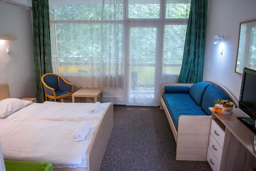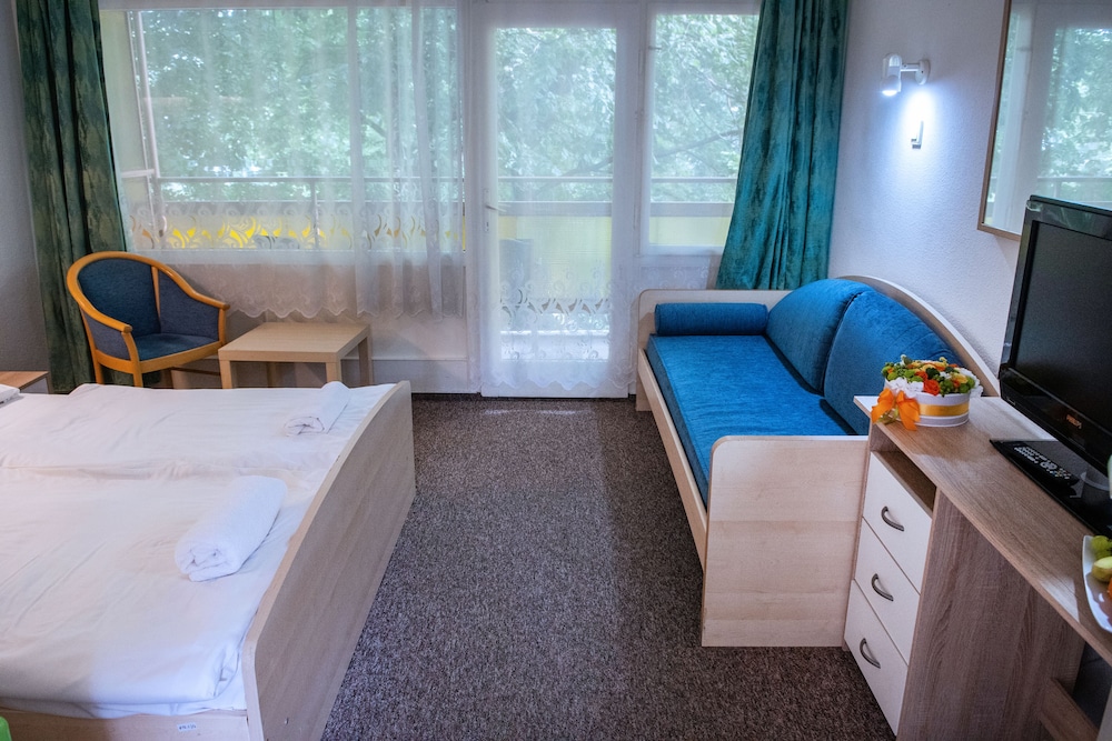 Med et ophold ved CE Napfény Hotel i Siófok (Siófok Aranypart) er du kun 5 minutters gang fra Balatonsøen og Imre Kálmán Museum. Dette hotel ligger 0,3 km fra Siófok færgeterminal og 0,4 km fra Grand Beach. Føl dig hjemme i et af de 57 aircondition-afkølede værelser, der indeholder minibar og LCD-tv. Værelserne har privat balkon eller terrasse. Med gratis Wi-Fi kan du altid komme på nettet, og kabelkanaler sørger for underholdningen. Badeværelserne har badekar og hårtørrer. De viste afstande er afrundet til nærmeste 0,1 kilometer.