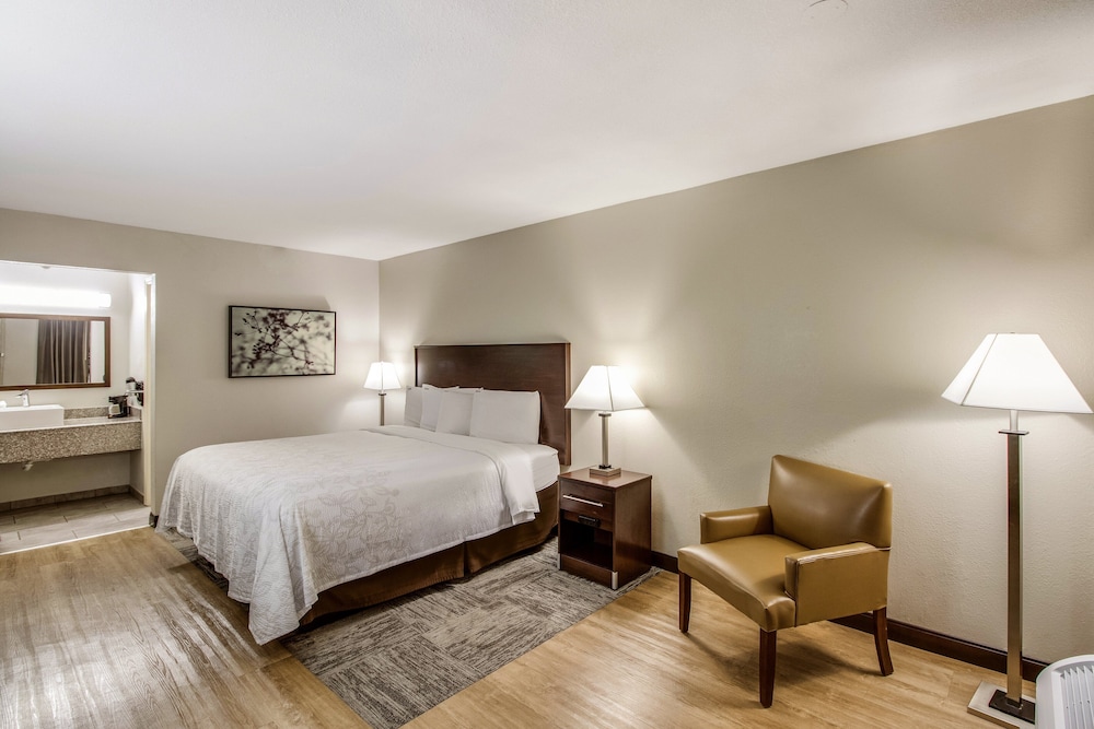 Med et ophold ved Red Roof Inn PLUS+ Dallas – Addison har du en central base i Addison, kun 15 minutters kørsel fra Galleria Dallas og Dallas Market Center. Dette hotel ligger 16,7 km fra Southern Methodist University og 20,9 km fra American Airlines Center. Føl dig hjemme i et af de 107 aircondition-afkølede værelser, der indeholder køleskab og fladskærms-tv. Med gratis Wi-Fi kan du altid komme på nettet, og kabelkanaler sørger for underholdningen. Værelset har et privat badeværelse med gratis toiletartikler og hårtørrer. Faciliteter inkluderer skriveborde og mikrobølgeovne, samt telefoner med gratis lokalopkald. De viste afstande er afrundet til nærmeste 0,1 kilometer.