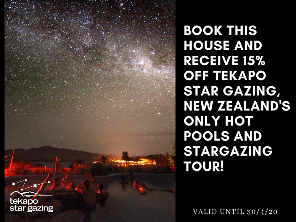Med et ophold ved denne feriebolig i Twizel er du 11,9 km fra Lake Pukaki og 16,8 km fra Lake Benmore. Dette feriested ligger 22,9 km fra Ohau-søen og 31,4 km fra Hot Tubs Omarama. Find dig til rette i denne feriebolig, som både har en pejs og et fladskærms-tv. Der er en privat terrasse. Et køkken er udstyret med et køleskab/fryser i fuld størrelse, en ovn og en kogeplade. Der er gratis Wi-Fi, så du altid kan komme på nettet, mens kabelkanaler sørger for underholdningen. De viste afstande er afrundet til nærmeste 0,1 kilometer.