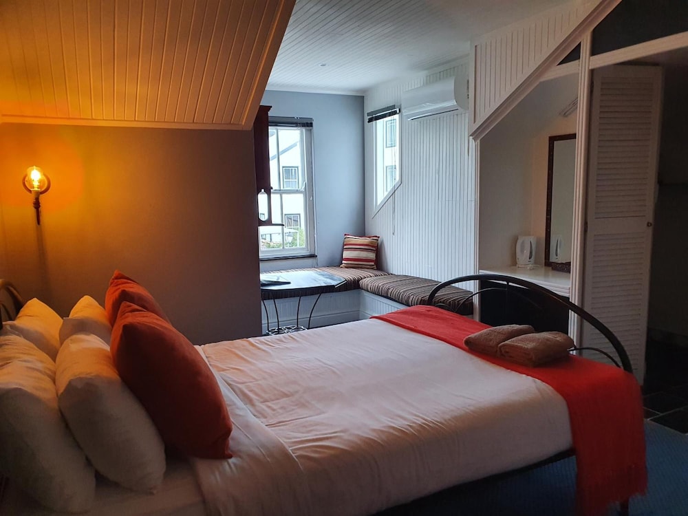 Med et ophold ved Knysna Wayside Inn i Knysna er du kun 5 minutters gang fra Kap Floraregionens Beskyttede Områder og Pledge Nature Reserve. Dette gæstehus ligger 0,8 km fra Knysna Lagune og 1 km fra Featherbed Boat Cruises. Overnat i et af de 14 værelser, der indeholder fladskærms-tv. Med gratis Wi-Fi kan du altid komme på nettet, og satellitkanaler sørger for underholdningen. Værelset har et privat badeværelse med bruser samt gratis toiletartikler og hårtørrer. Faciliteter inkluderer kaffe-/temaskiner, og rengøring udføres dagligt. Der kan anmodes baby-/barnesenge (gratis). De viste afstande er afrundet til nærmeste 0,1 kilometer.