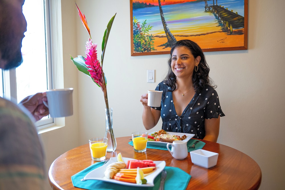 Med et ophold hos Sunbreeze Suites har du en central base i San Pedro, kun få skridt fra Belize-revet og San Pedro-kirken. Dette hotel ved stranden ligger 0,2 km fra San Pedro Central Park og 0,5 km fra Belize Chocolate Company. Føl dig hjemme i et af de 21 aircondition-afkølede værelser, der indeholder køkken med køleskab/fryser i fuld størrelse og kogeplade. Sengen på dit værelse er udstyret med topmadras. Der tilbydes et fladskærms-tv med kabelkanaler som underholdning, og med gratis Wi-Fi kan du altid komme på nettet. Faciliteter inkluderer telefoner samt pengeskabe og separate siddeområder. De viste afstande er afrundet til nærmeste 0,1 kilometer.