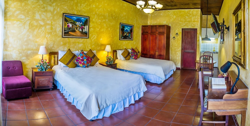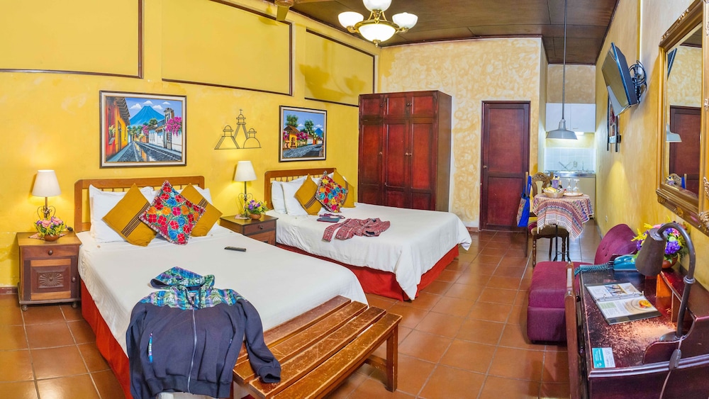 Gæsterne har blandt andet adgang til et forretningscenter, hurtig udtjekning og renseri/vaskeservice. Planlægger du et arrangement i Antigua Guatemala? På denne kro er der et område på 37 kvadratmeter til rådighed, bestående af konferencelokaler og et mødelokale. Lufthavnstransport tur-retur er til rådighed mod et tillægsgebyr (døgnet rundt). Fra en terrasse og en have kan du nyde den skønne udsigt, eller du kan lade dig selv forkæle med massage på stedet. Andre faciliteter på denne kro i kolonialstil inkluderer gratis trådløs internetadgang, concierge-tjenester og gavebutik/aviskiosk. Det er nemt at komme omkring og besøge nærliggende destinationerne med transportservicen (tillægsgebyr), der kører inden for en omkreds på 1 kilometer. Spis dig mæt i internationale retter på Del Arco, en restaurant, hvor du kan nyde godt af baren/loungen og udsigten til haven. Du kan også blive på værelset, hvor der er mulighed for roomservice (i et begrænset antal timer). Morgenmad tilberedt efter bestilling tilbydes mod gebyr dagligt fra kl. 07.00 til kl. 11.00.- Gebyr for morgenmad tilberedt efter bestilling: 8 USD for voksne og 8 USD for børn (cirkapriser)