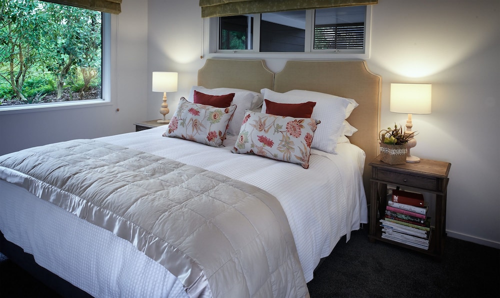 Med et ophold ved Treghan Luxury Lodge i Kerikeri, befinder du dig ved siden af en golfbane, blot fem minutters kørsel fra Makana Confections og Kerikeri Mission House. Denne hytte ved stranden ligger 3,8 km fra Stone Store og 5,7 km fra Rewa’s Village. Føl dig hjemme i et af de 5 værelser, der er indrettet med individuelt design, og som desuden indeholder køkken med køleskab/fryser i fuld størrelse og kogeplade. Din seng er udstyret med topmadras og premium-sengetøj. Der er gratis internetforbindelse via kabel og Wi-Fi, og med dvd-afspiller og satellitkanaler er der også sørget for underholdningen. Faciliteter inkluderer skriveborde og separate siddeområder, og rengøring udføres dagligt. De viste afstande er afrundet til nærmeste 0,1 kilometer.