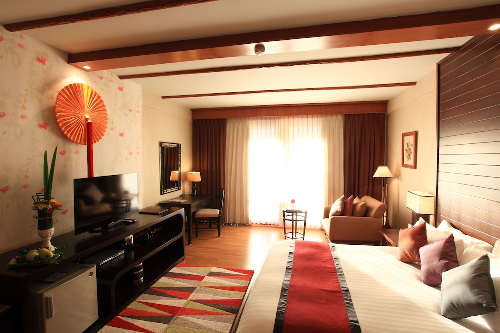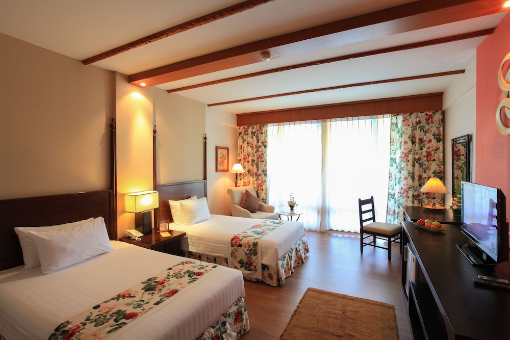 Gæsterne har blandt andet adgang til et forretningscenter, hurtig indtjekning og hurtig udtjekning. Dette resort tilbyder arrangementfaciliteter, såsom et konferencecenter og mødelokaler. Lufthavnstransport tur-retur er til rådighed mod et tillægsgebyr (døgnet rundt), og gratis selvstændig parkering findes desuden på stedet. Forkæl dig selv med et besøg i stedets spa, der tilbyder massage, kropsbehandlinger og ansigtsbehandlinger. Du vil helt sikkert værdsætte de rekreative faciliteter, herunder 2 udendørs swimmingpools, en sauna og et fitnesscenter. Dette resort tilbyder desuden gratis trådløs internetadgang, concierge-tjenester og bryllupsfaciliteter. Få stillet sulten med thailandske retter på The Terrace, en restaurant med udsigt til haven, eller bliv på værelset, hvor der er mulighed for roomservice (i et begrænset antal timer). Afslut dagen med en drink eller to i baren/loungen. Morgenmadsbuffet tilbydes mod gebyr dagligt fra kl. 06.00 til kl. 10.00.- Gebyr for morgenmadsbuffet: 350 THB pr. person (cirkapriser)
