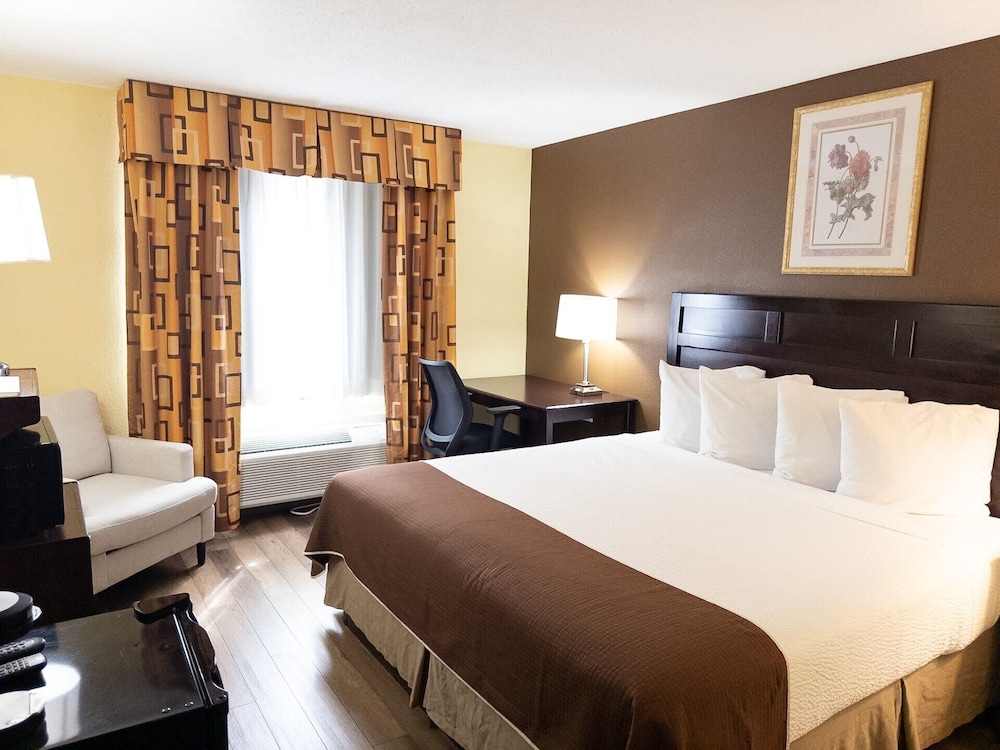 Med et ophold ved Baymont by Wyndham Battle Creek Downtown har du en central base i Battle Creek, kun 10 minutters kørsel fra Firekeepers Casino og Kellogg Arena. Dette hotel ligger 0,8 km fra Full Blast Water Park og 0,9 km fra Kalamazoo River. Føl dig hjemme i et af de 61 aircondition-afkølede værelser, der indeholder mikrobølgeovn og fladskærms-tv. Med gratis Wi-Fi kan du altid komme på nettet, og kabelkanaler sørger for underholdningen. Værelset har et privat badeværelse med gratis toiletartikler og hårtørrer. Faciliteter inkluderer skriveborde og kaffe-/temaskiner, og rengøring udføres dagligt. De viste afstande er afrundet til nærmeste 0,1 kilometer.
