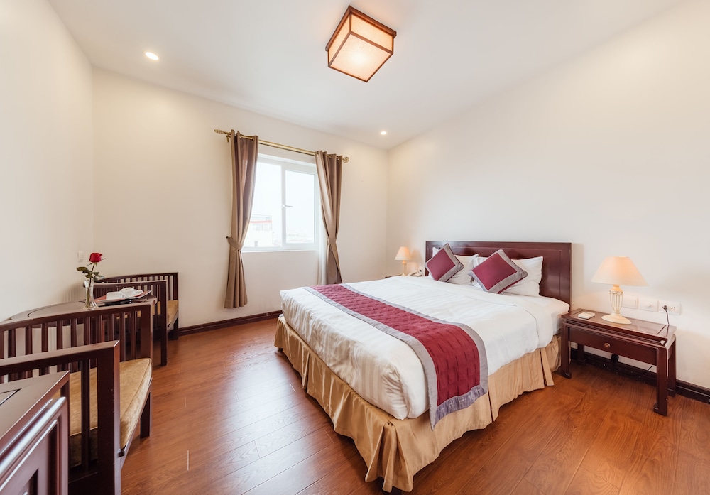 Gæsterne har blandt andet adgang til et døgnåbent forretningscenter, hurtig udtjekning og renseri/vaskeservice. Planlægger du et arrangement i Hanoi? På dette hotel er der et område på 9 kvadratmeter til rådighed, bestående af et konferencecenter og et mødelokale. Lufthavnstransport tur-retur er til rådighed mod et tillægsgebyr (døgnet rundt), og selvstændig parkering (tillægsgebyr) findes desuden på stedet. Sørg for at nyde de rekreative faciliteter, der inkluderer et fitnesscenter og udlejningscykler. Andre faciliteter på dette hotel i art deco-stil inkluderer gratis trådløs internetadgang, concierge-tjenester og bryllupsfaciliteter. Spis dig mæt i vietnamesiske retter på La Dolce Vita Restaurant, en restaurant, hvor du kan nyde en drink i baren/loungen. Du kan også blive på værelset, hvor der er mulighed for roomservice (i et begrænset antal timer). Gratis lokale morgenmadsretter serveres dagligt fra kl. 06.30 til kl. 09.00.- Gebyr for lufthavnstransport: 25 USD pr. køretøj (varighed: enkelt, maks. antal personer: 4)