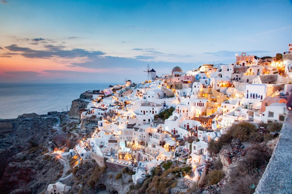 Rejsen starter i Fira, Santorinis livlige hovedby, spektakulært beliggende langs calderaens kant. Her er udsigterne konstant til stede – over det dybblå hav, vulkanøerne og de hvide huse, der klatrer langs klipperne.