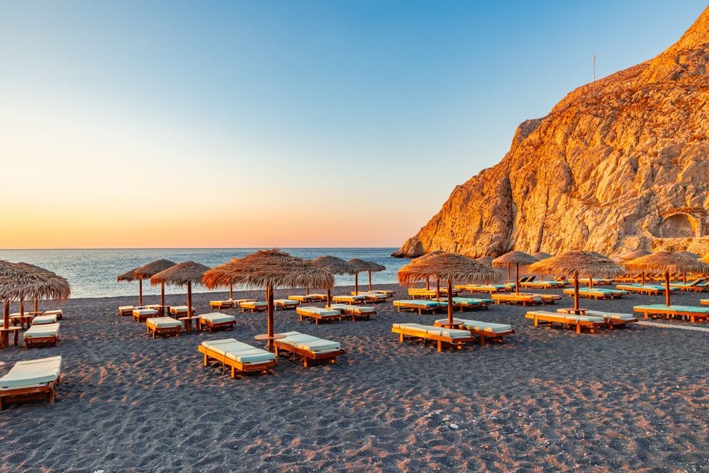 Efter nogle intense og oplevelsesrige dage skifter du tempo og fortsætter til Kamari på Santorinis østside. Her mødes du af en lang sort sandstrand, klart vand og en strandpromenade kantet af restauranter og caféer.