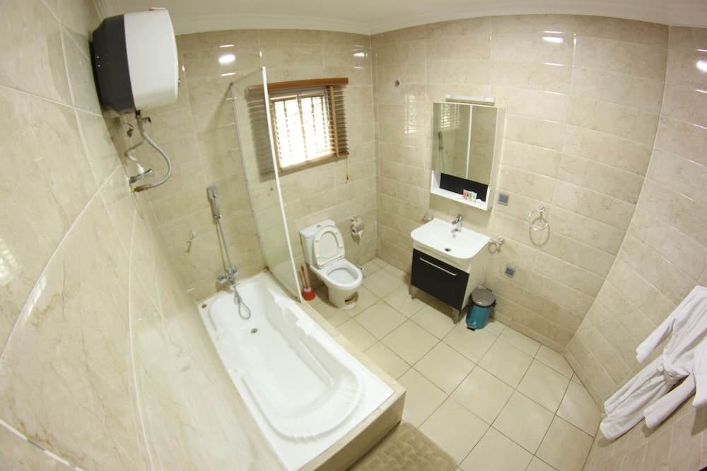Celia's Suites ligger i Abeokuta, kun 5 minutters kørsel fra Oke-Ilewo-moskeen og 12. juni-kulturcentret. Dette hotel med luksusfaciliteter ligger 3 km fra MKO Abiolas internationale stadion og 4,8 km fra Olusegun Obasanjo Presidential Library Abeokuta. Føl dig hjemme i et af de 20 aircondition-afkølede værelser, der indeholder køleskab og fladskærms-tv. Med gratis Wi-Fi kan du altid komme på nettet, og kabelkanaler sørger for underholdningen. Værelset har et privat badeværelse med badekar eller bruser samt gratis toiletartikler og badekåbe. Faciliteter inkluderer pengeskabe og skriveborde, og rengøring udføres dagligt. De viste afstande er afrundet til nærmeste 0,1 kilometer.