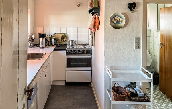 Nyd en ferie midt i en landlig idyl og fordyb jer i den unikke stemning af et hus, der er over hundrede år gammelt. Dette charmerende feriehus på Ærø kombinerer original karakter med en hyggelig atmosfære og byder på en rolig pause midt i den maleriske natur. I det nænsomt bevarede bindingsværkshus skaber gamle bjælker, lavt til loftet og antikke møbler en særlig boligstemning. Find jer godt til rette på sofaen i stuen og nyd hyggen i dette traditionelle hus. Den indbydende spiseplads byder på plads til hyggelige måltider, som I kan tilberede i det lille, men funktionelle køkken. Intet moderne design venter jer i dette hus, men snarere charmen fra svundne tider med originale detaljer.