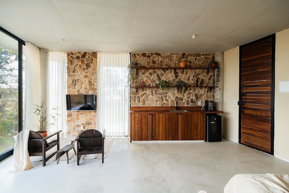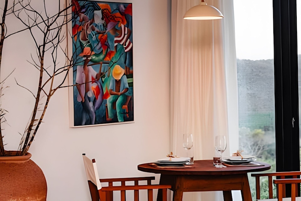 Med et ophold ved Villa Aruanda i Alto Paraíso de Goiás er du kun 10 minutters kørsel fra Catarata dos Couros og Poco Encantado. Denne villa ligger 3,9 km fra Agua Fria Vandfald og 3,9 km fra Macaquinho Vandfald. Forkæl dig selv med et ophold i et af de 2 værelser, der er indrettet med individuelt design, og som desuden indeholder indendørs private boblebade og smart-tv. Din seng er udstyret med topmadras og egyptiske bomuldslagner. Værelserne har privat balkon. Med gratis Wi-Fi kan du altid komme på nettet, og digitale kanaler sørger for underholdningen. Badeværelserne har separat badekar og bruser med dybe badekar og designertoiletartikler. De viste afstande er afrundet til nærmeste 0,1 kilometer.