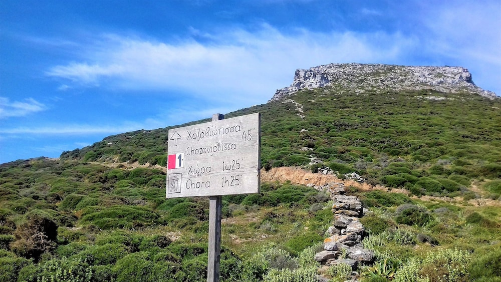 Vigla Hotel ligger i bjergene i Amorgos, kun 1 minutters kørsel fra Anargyroi Kirke og 7 minutters kørsel fra Panagia Epanochoriani Kirke. Dette hotel med familievenlig profil ligger 3,4 km fra Aegiali Strand og 8,4 km fra Agios Pavlos Strand. Føl dig hjemme i et af de 24 værelser med individuelt møblement, der desuden har køleskab og LCD-tv. Værelserne har privat balkon eller terrasse. Gratis internetforbindelse via kabel og Wi-Fi er til rådighed. Værelset har et privat badeværelse med bruser samt gratis toiletartikler og hårtørrer. De viste afstande er afrundet til nærmeste 0,1 kilometer.