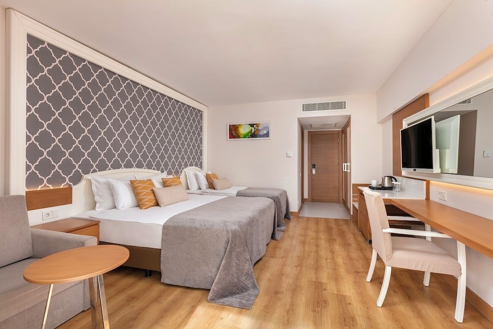 Fra Sherwood Exclusive Lara, All Inclusive i Antalya (Lara) er der kun 15 minutters kørsel til Lara Strand og Terra City Butikscenter. Dette overnatningssted med alt inklusive ligger 22,7 km fra Konyaaltı Strand og 19,3 km fra MarkAntalya Indkøbscenter. Føl dig hjemme i et af de 506 værelser, der indeholder gratis produkter i minibaren og fladskærms-tv. Værelserne har privat balkon med møbler. Med gratis Wi-Fi kan du altid komme på nettet, og satellitkanaler sørger for underholdningen. Badeværelserne er udstyret med brusehoved med spredningseffekt og gratis toiletartikler. De viste afstande er afrundet til nærmeste 0,1 kilometer.