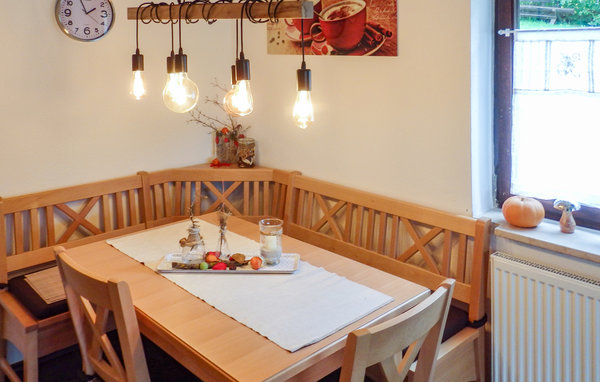 I denne stilfulde, moderne og komfortabelt indrettede ferielejlighed, der ligger i ferieparken Am Hohen Bogen i Arrach i den øverste husrække der ligger yderst, kan I holde en rigtig afslappet ferie.