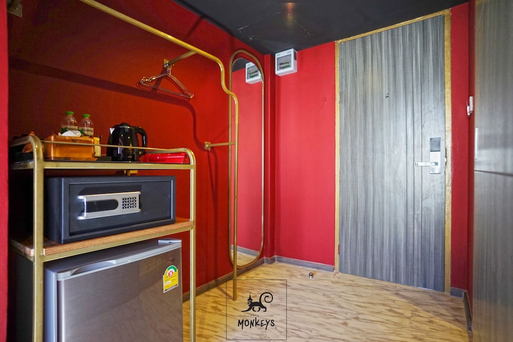Fra 4 Monkeys Hotel i Bangkok (Bangkok bymidte) er der kun 5 minutters kørsel til Khaosan Road og Det Store Palads. Dette hotel ligger 5,1 km fra Siam Paragon Indkøbscenter og 5,3 km fra MBK Center. Føl dig hjemme i et af de 78 aircondition-afkølede værelser, der desuden indeholder LCD-tv. Med gratis Wi-Fi kan du altid komme på nettet, og kabelkanaler sørger for underholdningen. Værelset har et privat badeværelse, der indeholder boblebadekar og brusehoved med spredningseffekt. Faciliteter inkluderer pengeskabe og elkedler, og rengøring udføres dagligt. De viste afstande er afrundet til nærmeste 0,1 kilometer.