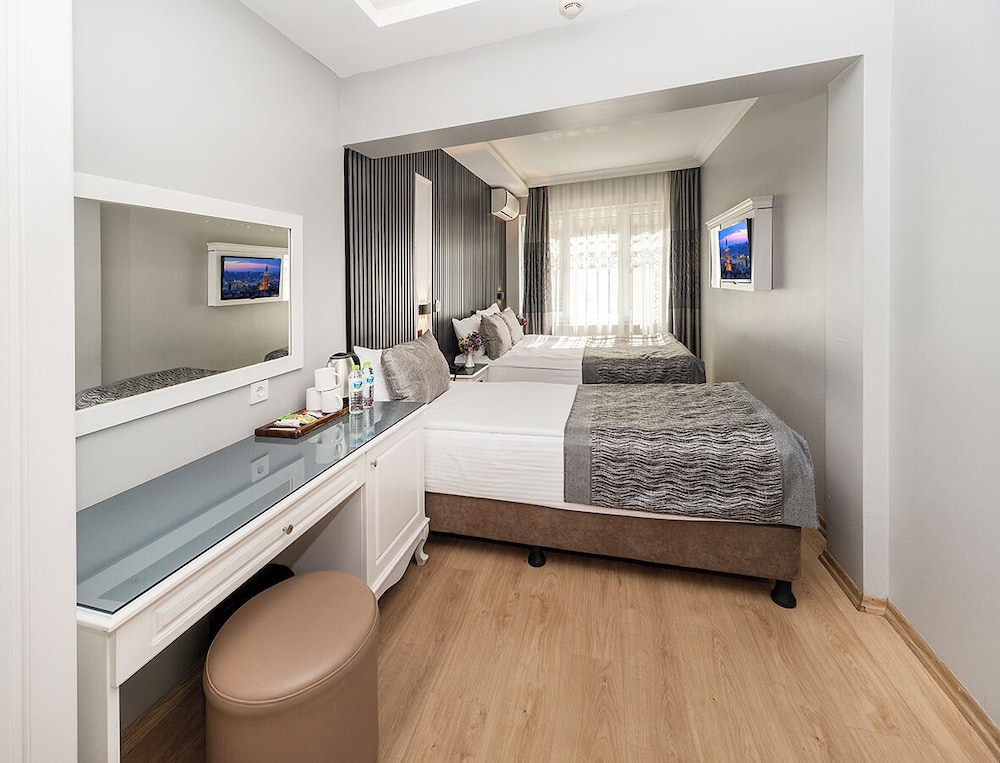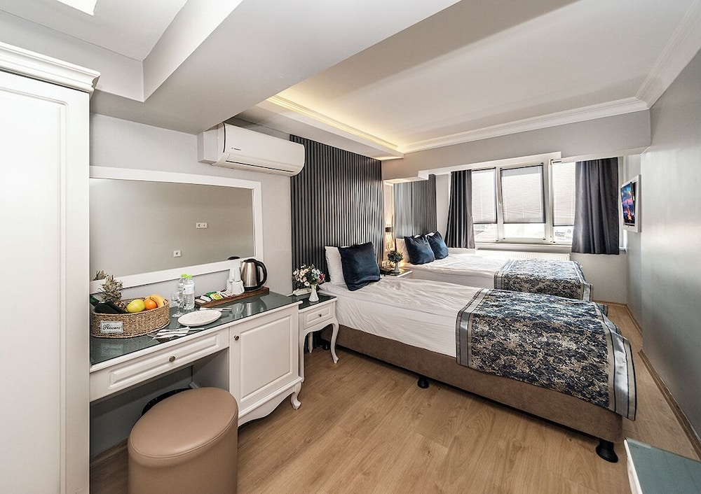 Beyazit Palace Hotel har en central beliggenhed i Istanbul, kun 9 min. gang fra Den Store Bazar og 11 min. gang fra Istanbul Universitet. Dette hotel ligger 2,2 km fra Den blå moské og 3 km fra Hagia Sophia. Føl dig hjemme i et af de 38 aircondition-afkølede værelser, der indeholder minibar og LCD-tv. Med gratis Wi-Fi kan du altid komme på nettet, og satellitkanaler sørger for underholdningen. Værelset har et privat badeværelse med bruser samt brusehoved med spredningseffekt og gratis toiletartikler. Faciliteter inkluderer telefoner samt pengeskabe med plads til bærbar computer og elkedler. De viste afstande er afrundet til nærmeste 0,1 kilometer.