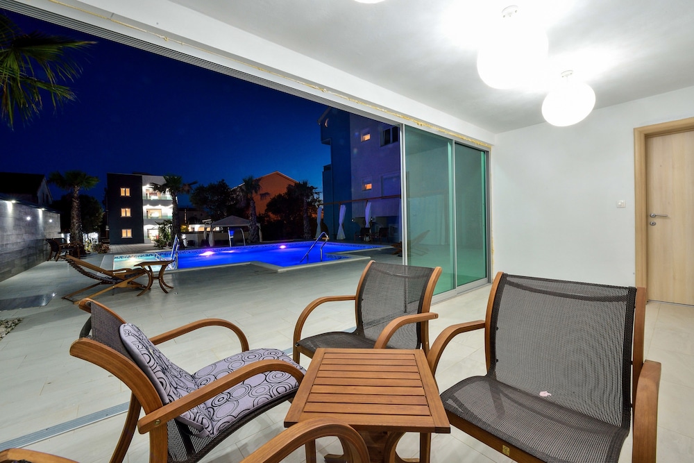 Med et ophold ved Villa Nika i Bibinje er du kun 10 minutters kørsel fra City Galleria og Vladimir Nazor-parken. Denne lejlighed med familievenlig profil ligger 7,6 km fra Stanovi Stadion og 7,9 km fra Kresimir Cosic-hallen. Føl dig hjemme i et af de 7 aircondition-afkølede værelser, der indeholder køkken med køleskab og ovn. Værelserne har privat balkon eller terrasse. Med gratis Wi-Fi kan du altid komme på nettet, og kabelkanaler sørger for underholdningen. Faciliteter inkluderer skriveborde og elkedler, og du kan desuden anmode om mikrobølgeovn. De viste afstande er afrundet til nærmeste 0,1 kilometer.